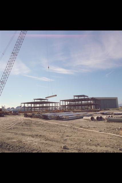 N-258 NAS (Numerical Aerodynamic Simualtion) Facility, aerials of (pre) construction site, Framing