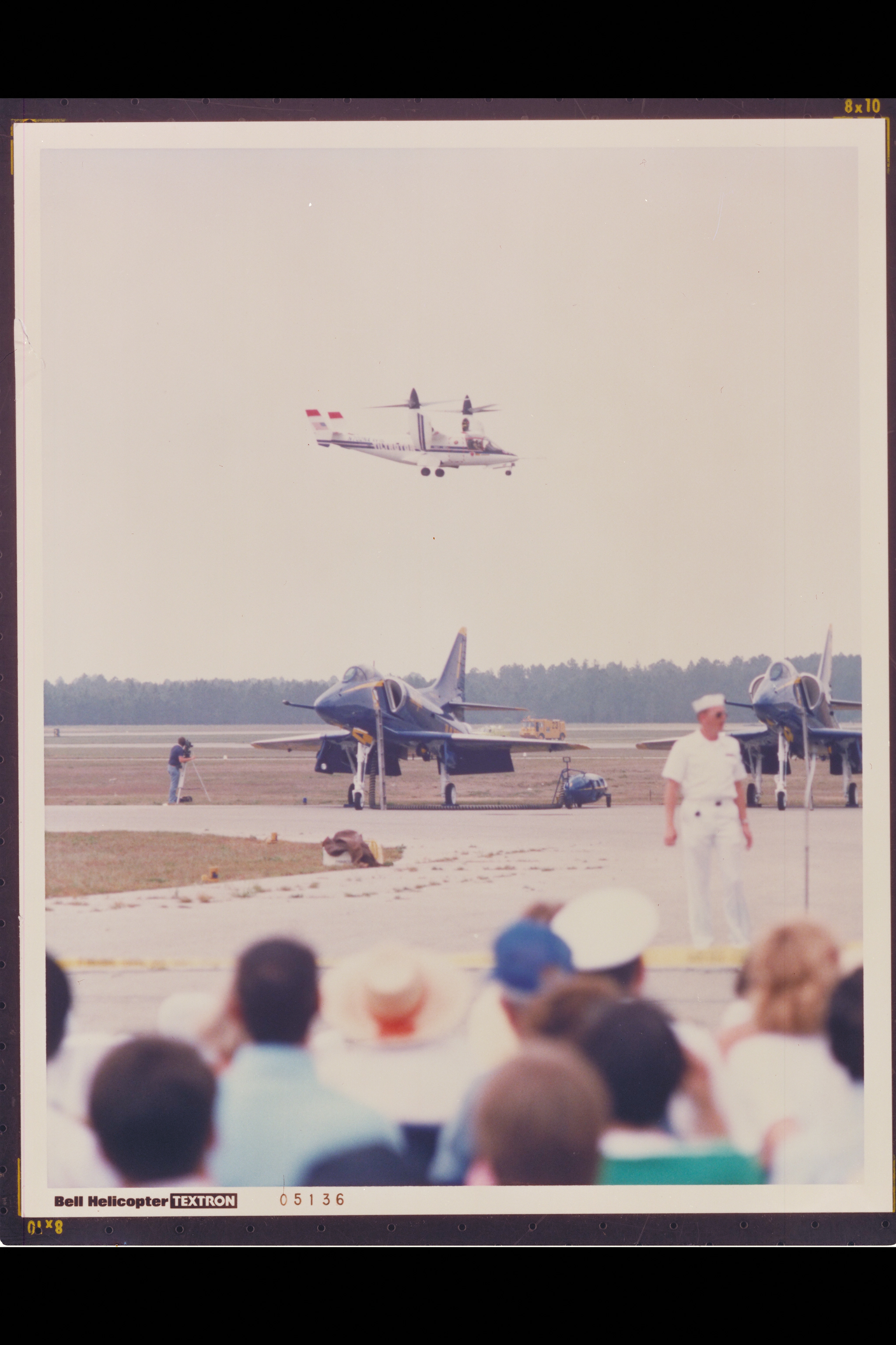 Bell Textron XV-15 Tilt Rotor Aircraft flight demo at airshow - Navy Blue Angles in forground) (Bell Helicopter Textron ref: 05136)