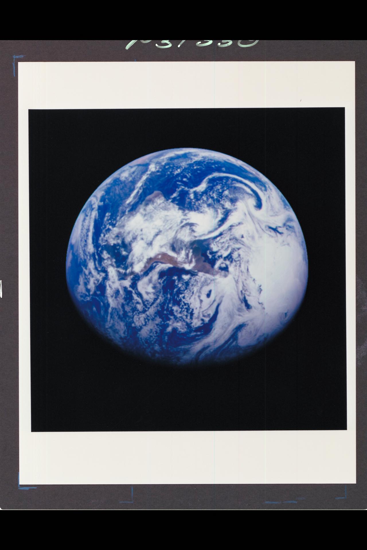 ref # P-37330 Range : 1.3 million miles This color image of the Earth was obtained by the Galileo spacecraft at about 6:10 am PST. The color composite used images taken through the red, green and violet filters. South America is near the center of the picture, and the white, sunlit continent of Antarctica is below. Picturesque weather fronts are visible in the South Atlantic, lower right. This is the first frame of the Galileo Earth spin movie, a 500-frame time-lapse motion picture showing a 25-hour period of Earth's rotation and atmosphertic dynamics.