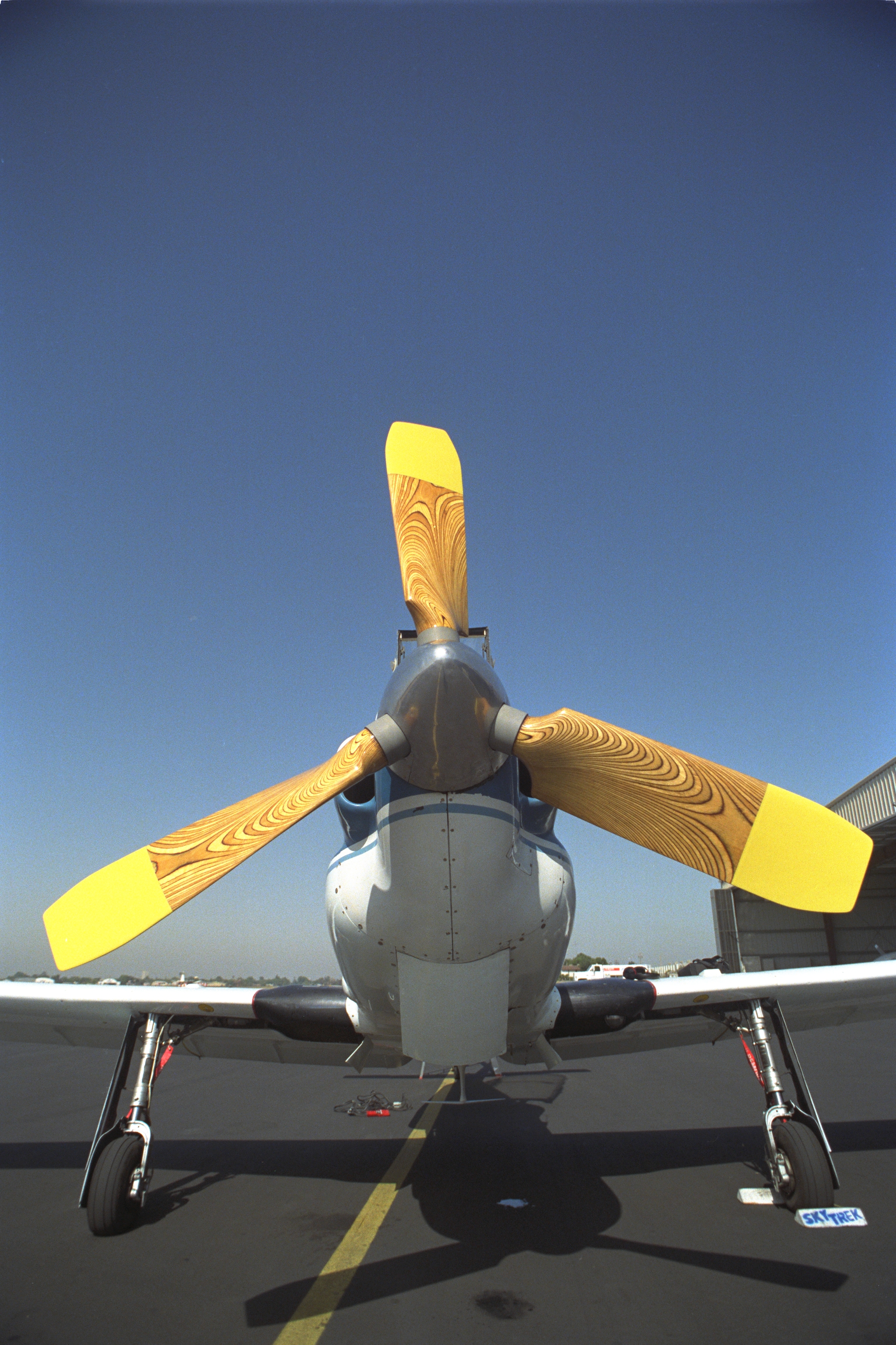 YO-3A (NASA 718) prepares for flight test on S-76C out of Modesto, CA - showing wooden propellers of the quiet plane