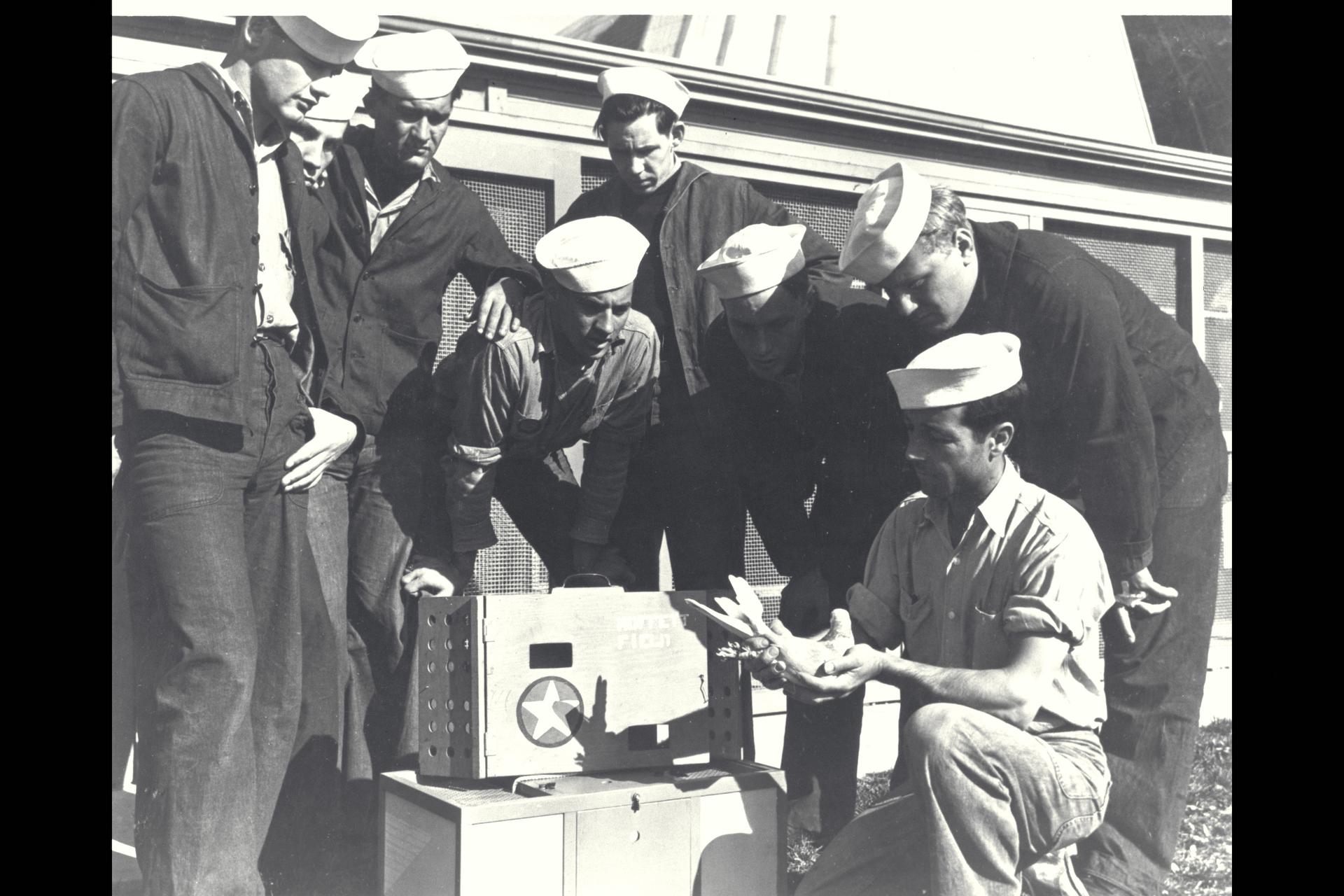 Moffett Field Pigeon with Navy personnel (@1935)