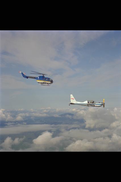 YO-3A (NASA-718) & BO-105 helicopter over Livermore Valley for in flight Rotorcraft Acoustics Program - distance versus noise calibration