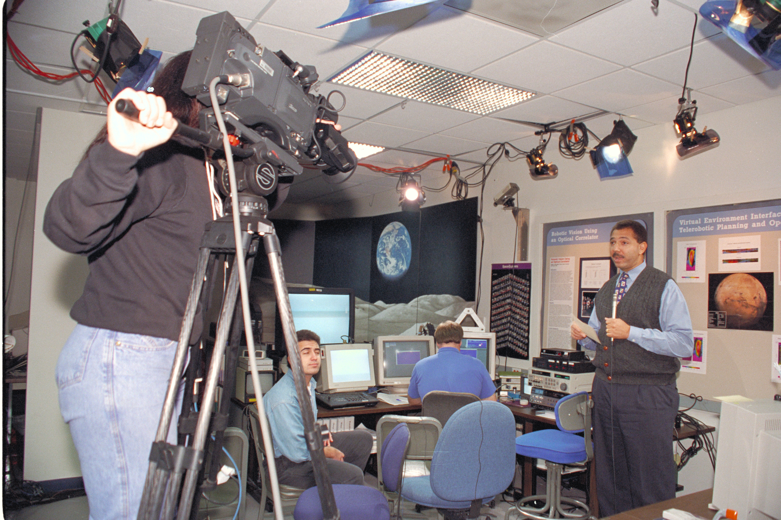 Life from other Worlds' with McNair Middle School TROV robot explores under Antarctic ice-image during demo with students operating TROV