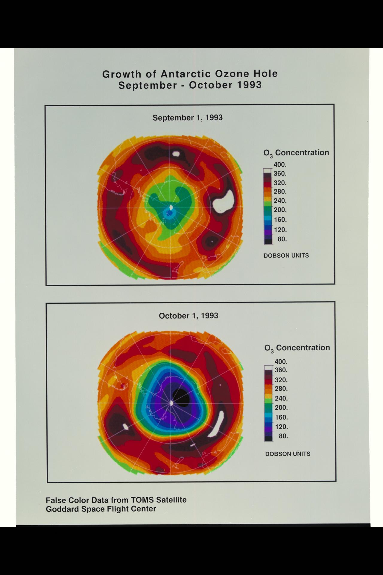 ER-2: ASHOE/MAESA Expidition art (P.I. S Hipskind) Airborne Southern Hemisphere Ozone Experiment; Measurements for Assessing the Effects of Stratospheric Aircraft - Growth of Antarctic Ozone hole September - October 1993 (false color data from TOMS staellite, Goddard Space Flight Center)