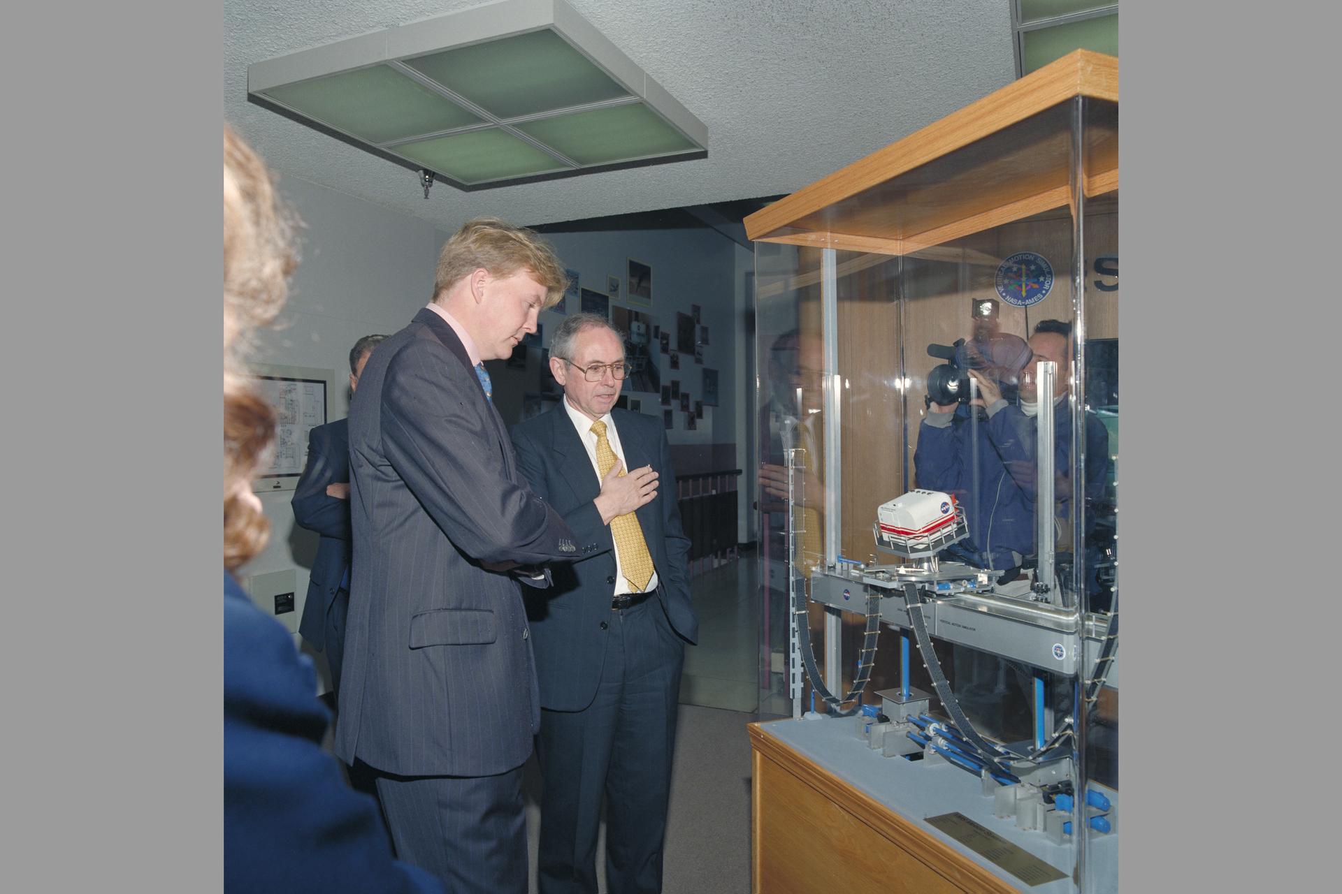Prince Willem-Alexander van Oranje (Crown Prince of the Netherlands) visits Ames. Shown here with Dr Henry McDonald, Ames Director in lobby of N-243. His visit was prompted by his strong personal interest in aviation.