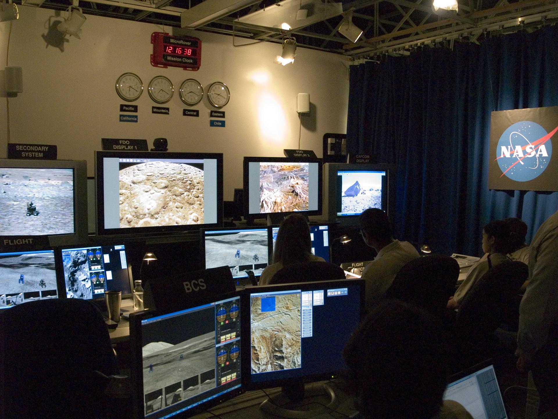 Spaceward Bound Program in Atacama Desert; shown here is a realtime webcast from Yungay, Chile vis satellite involving NASA Scientists and seven NASA Explorer school teachers. On the Ames end we find the Girl Scouts Space cookines robotic team. The robot nicknamed Zoe is looking for life in extreme environments in preparation for what might be encounter on Mars. see full text on the NASA-Ames News - Research # 04-91AR