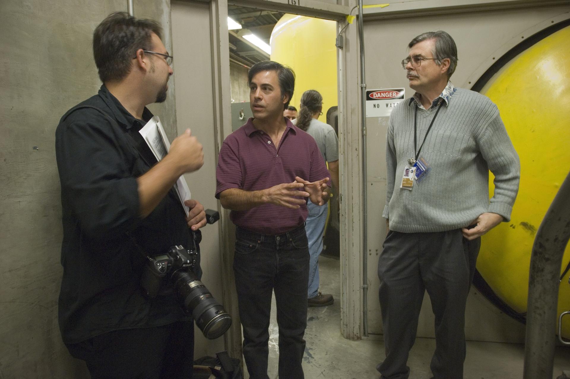 Ames holds a Media Day at the Hypervelocity Free Flight facility where Ames is conducting high-speed tests of small models of the agency's new Orion CEV to learn about stability during flight. The hypervelocity test facility uses a gun to shoot Orion models between 0.5 and l.5 inches (1.25 - 3.75 centimeters in diameter. The facility can conduct experiments with speeds up to 19,000 miles per hour (30,400 kilometers per hour) with John Bluck (Ames PAO) and Chuck Cornelison Ames Engineer