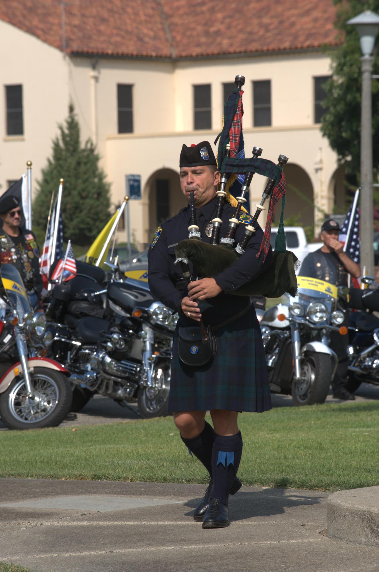 September 11th remembrance ceremony held in front of NASA Research Park Bldg-17 (Lunar Science Institute) hosted by the American Legion, Post 881, Moffett Field. Bagpipe Amazing Grace, Richard Charette, Scottish American Military Society