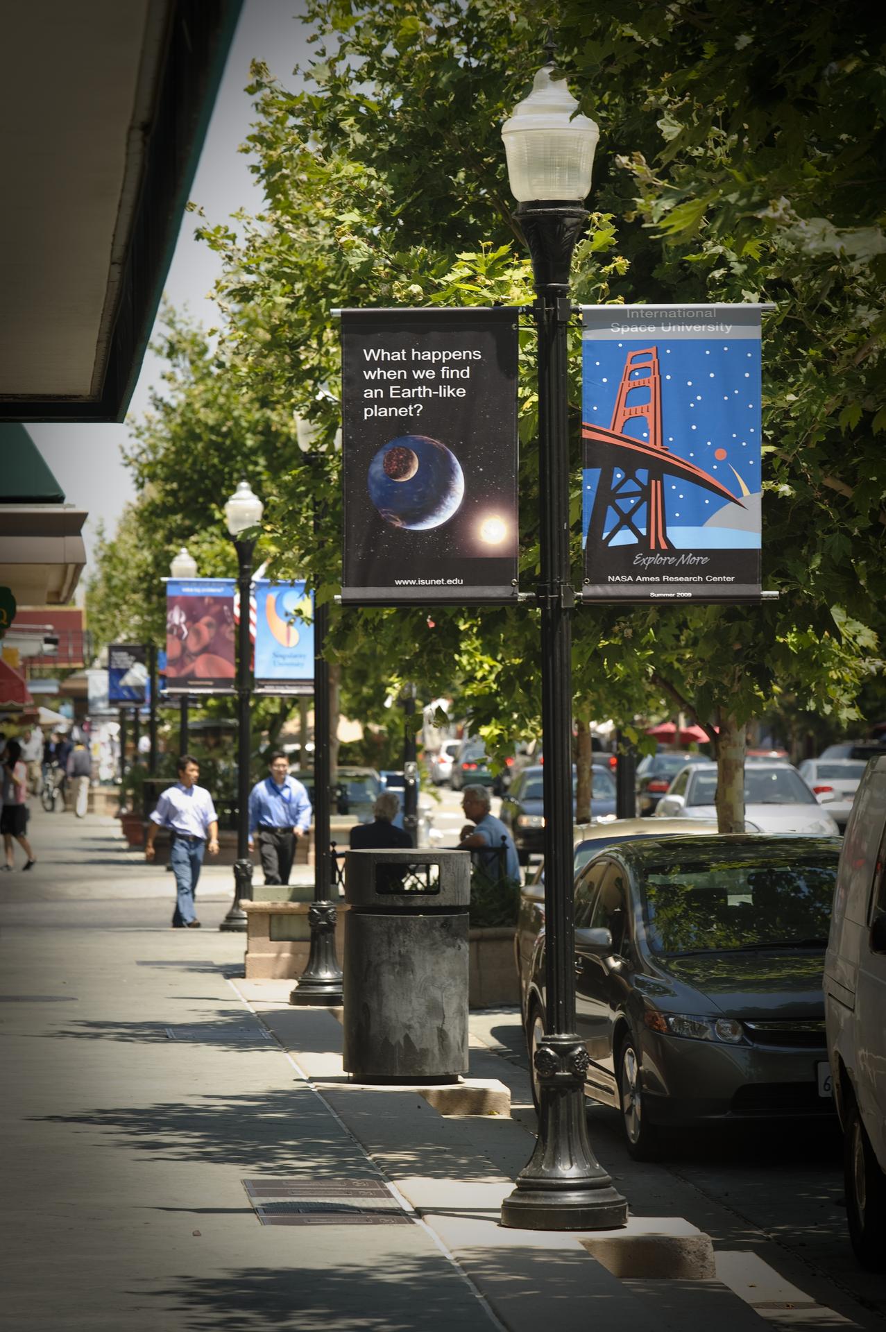 International Space University (ISU) SSP 2009 NASA ISU signage on Castro Street, Mountain View, Calif. Questions seeking answers.