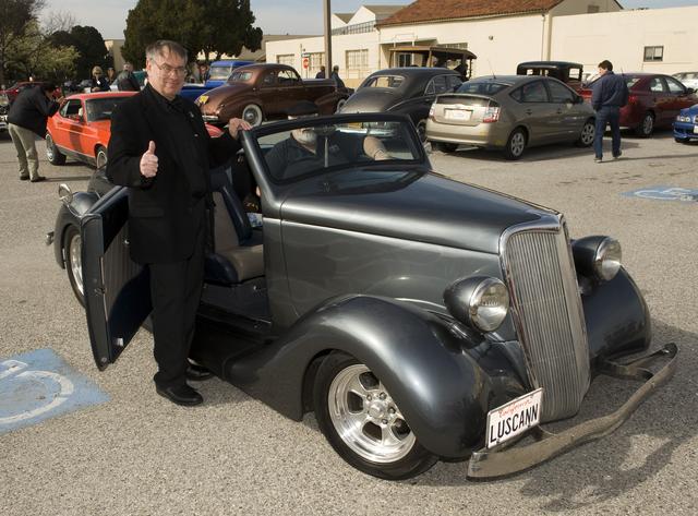 Ames 70th Anniversary Turn Back the Clock Day with antique Class Cars and Classic Car parade around the center. S. Pete Worden, Ames Center Director hopes onboard for a ride in the parade.