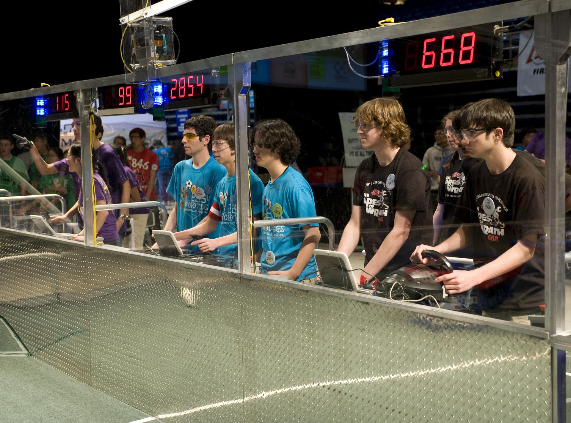 For Inspiration and Recognition of Science and Technology; FIRST Robotics Competition 2010 Silicon Valley Regional held at San Jose State University, San Jose, California for teams 115, 2854 and 668 the drive is on