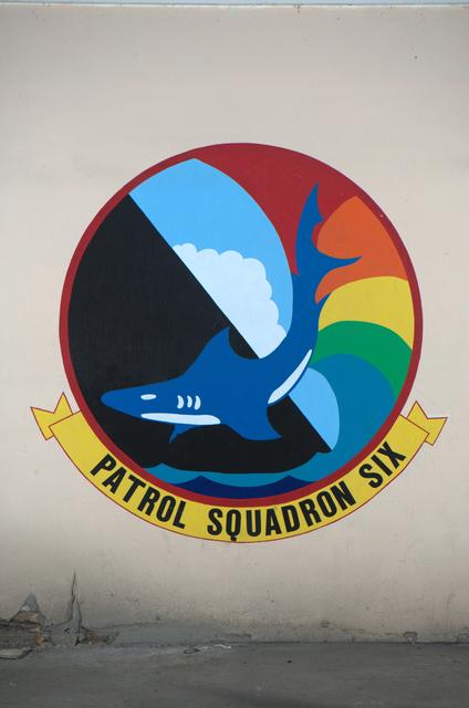 A proud Naval History. Squadron Logos in Hangar One at Moffett Federal Airfield, California.