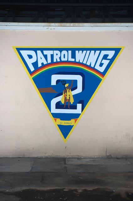 A proud Naval History. Squadron Logos in Hangar One at Moffett Federal Airfield, California.