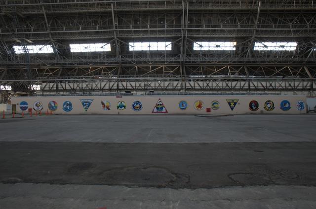 A proud Naval History. Squadron Logos in Hangar One at Moffett Federal Airfield, California.