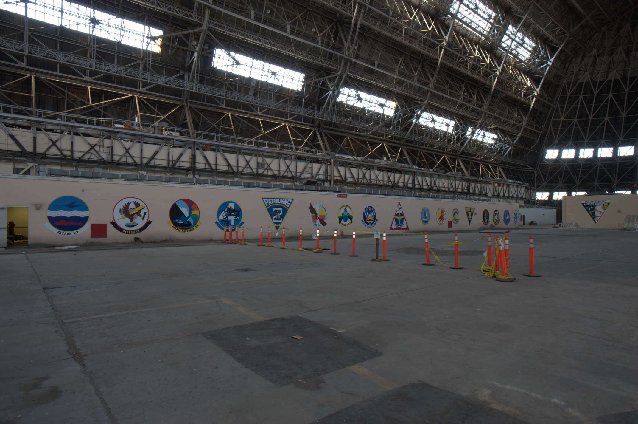 A proud Naval History. Squadron Logos in Hangar One at Moffett Federal Airfield, California.