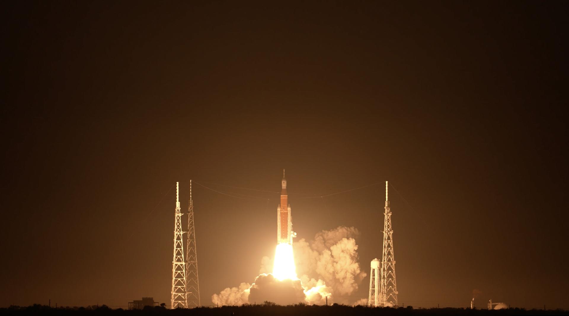 NASA’s Space Launch System (SLS) rocket with the Orion spacecraft atop launches the agency’s Artemis I flight test, Wednesday, Nov. 16 from Launch Complex 39B at NASA’s Kennedy Space Center in Florida. The Moon rocket and spacecraft lifted off at 1:47 a.m. ET. The Artemis I mission is the first integrated test of the agency’s deep space exploration systems: the Space Launch System rocket, Orion spacecraft, and supporting ground systems. The mission is the first in a series of increasingly complex missions to the Moon. With Artemis missions, NASA will land the first woman and first person of color on the Moon, using innovative technologies to explore more of the lunar surface than ever before.