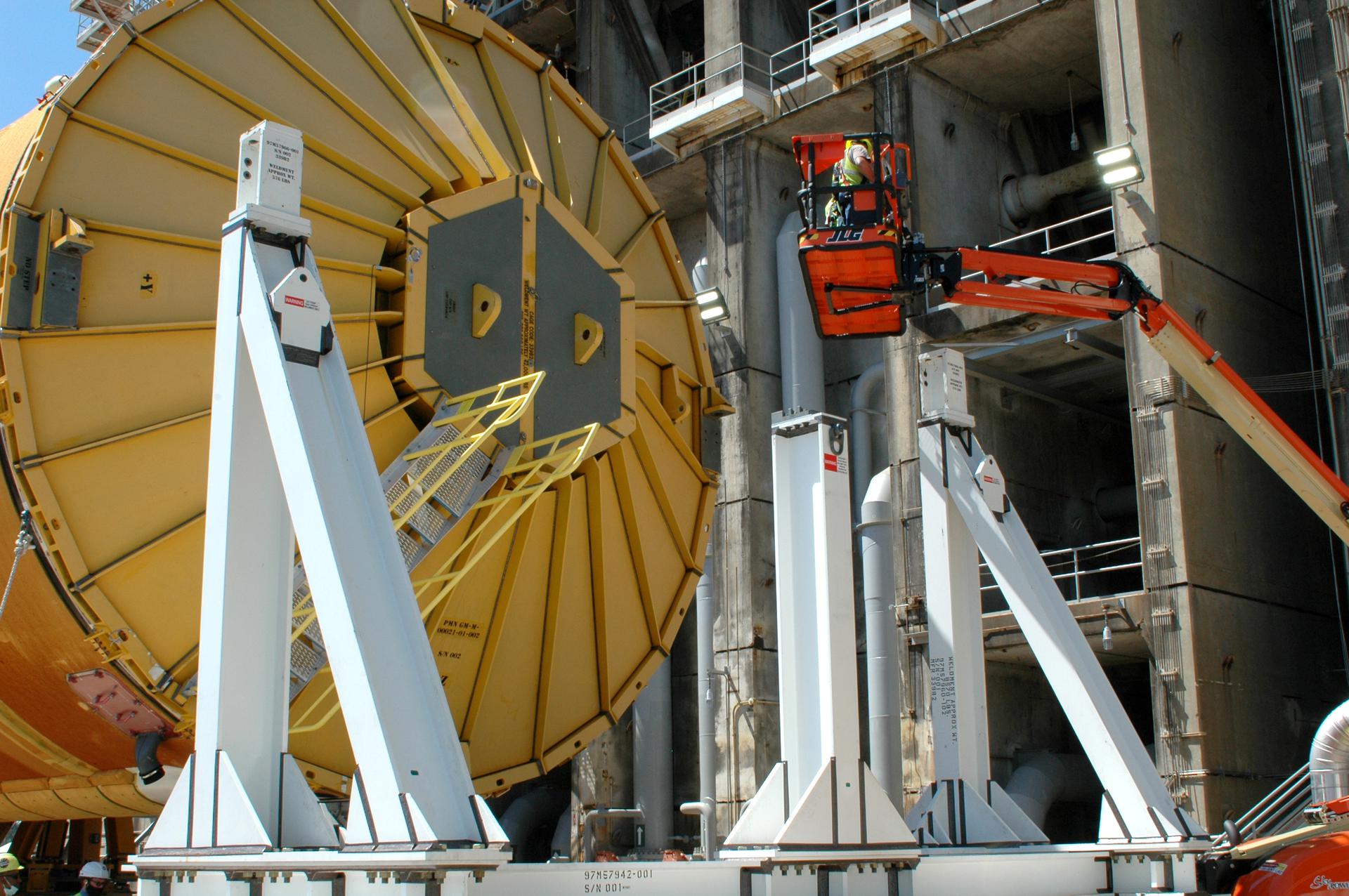 Team members at NASA’s Stennis Space Center near Bay St. Louis, Mississippi, load the first core stage of the agency’s Space Launch System (SLS) rocket on to the agency’s Pegasus barge in preparation for its transport to Kennedy Space Center in Florida. The loading activity followed removal of the stage from the B-2 Test Stand at Stennis on April 19-20, 2021. It comes about a month after NASA conducted a successful hot fire of the stage and its four RS-25 engines on March 18 and after teams completed various refurbishment activities. Once at Kennedy, the will be integrated with the rest of SLS rocket and prepared for the launch of the Artemis I mission to the Moon. Photo Credit: NASA