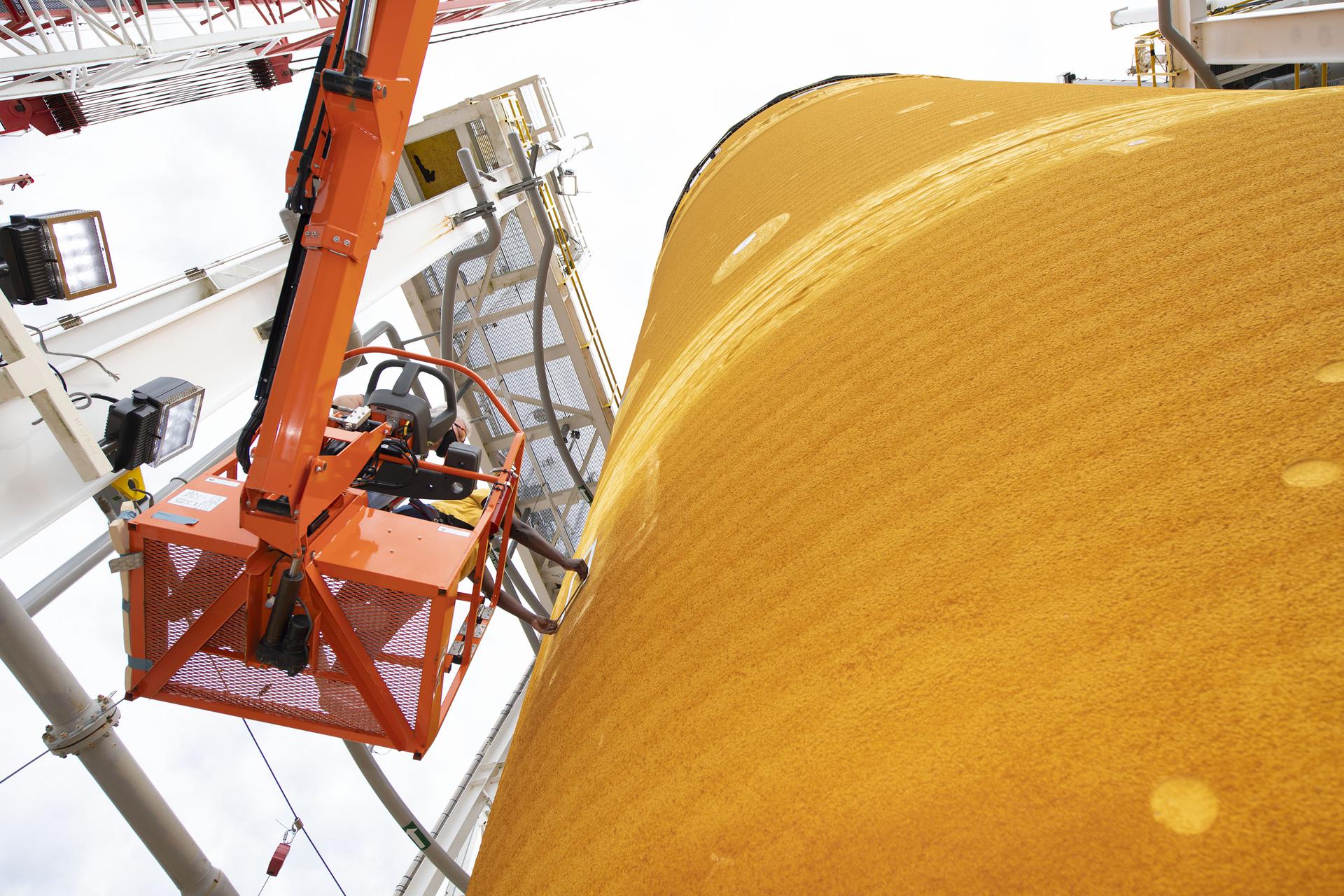 Team members at NASA’s Stennis Space Center near Bay St. Louis, Mississippi, complete refurbishment work on the first core stage of the agency’s Space Launch System (SLS) rocket. The work followed a successful hot fire of the stage and its four RS-25 engines March 18. The hot fire marked the culmination of a yearlong Green Run series of tests of the stage and its integrated systems. Following refurbishment work, the core stage will be removed from the test stand and transported to Kennedy Space Center in Florida, aboard NASA’s Pegasus barge, shown delivering equipment to the B-2 Test Stand. At Kennedy, the core stage will be integrated with the rest of SLS rocket and prepared for the launch of the Artemis I mission to the Moon. Photo Credit: NASA