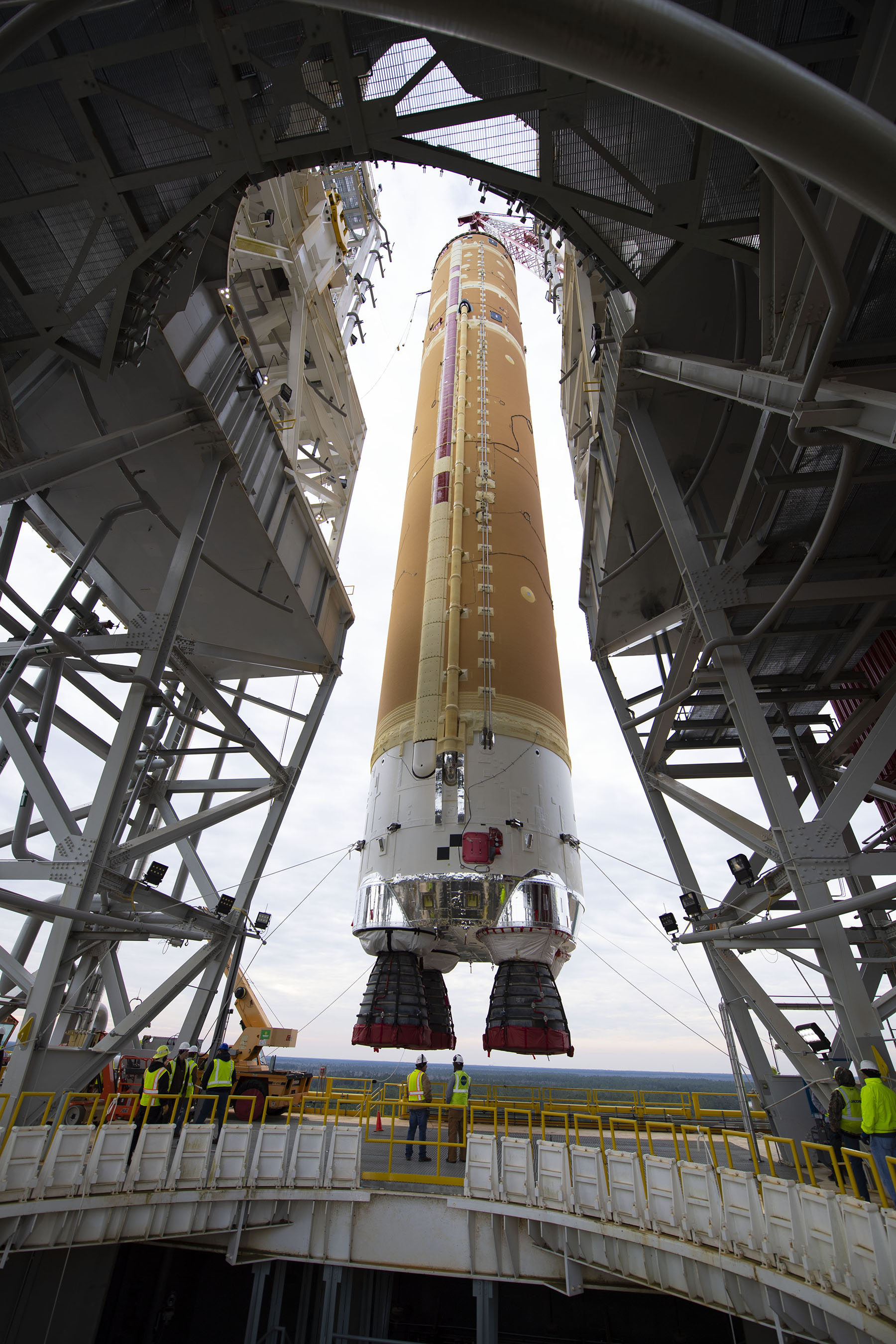 On Jan. 21-22, 2020, crews at Stennis Space Center lifted and installed the first core stage of NASA’s new Space Launch System (SLS) rocket onto the B-2 Test Stand. In upcoming months, a top-to-bottom, integrated series of Green Run tests will be conducted on the stage and its sophisticated systems. Following testing, the stage will be used to help launch the maiden Artemis I test mission of SLS and the Orion spacecraft. Through the Artemis program, NASA will send humans, including the first woman and next man, to the Moon to establish a sustainable presence.