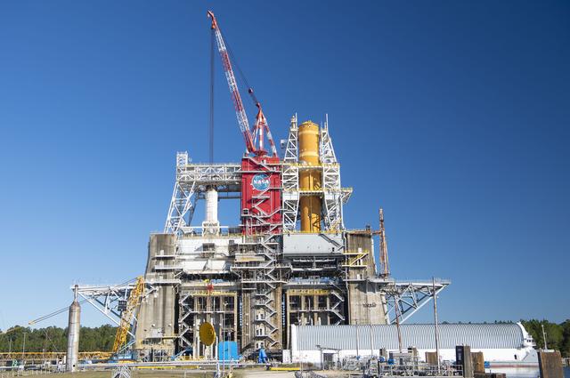 On Jan. 21-22, 2020, crews at Stennis Space Center lifted and installed the first core stage of NASA’s new Space Launch System (SLS) rocket onto the B-2 Test Stand. In upcoming months, a top-to-bottom, integrated series of Green Run tests will be conducted on the stage and its sophisticated systems. Following testing, the stage will be used to help launch the maiden Artemis I test mission of SLS and the Orion spacecraft. Through the Artemis program, NASA will send humans, including the first woman and next man, to the Moon to establish a sustainable presence.