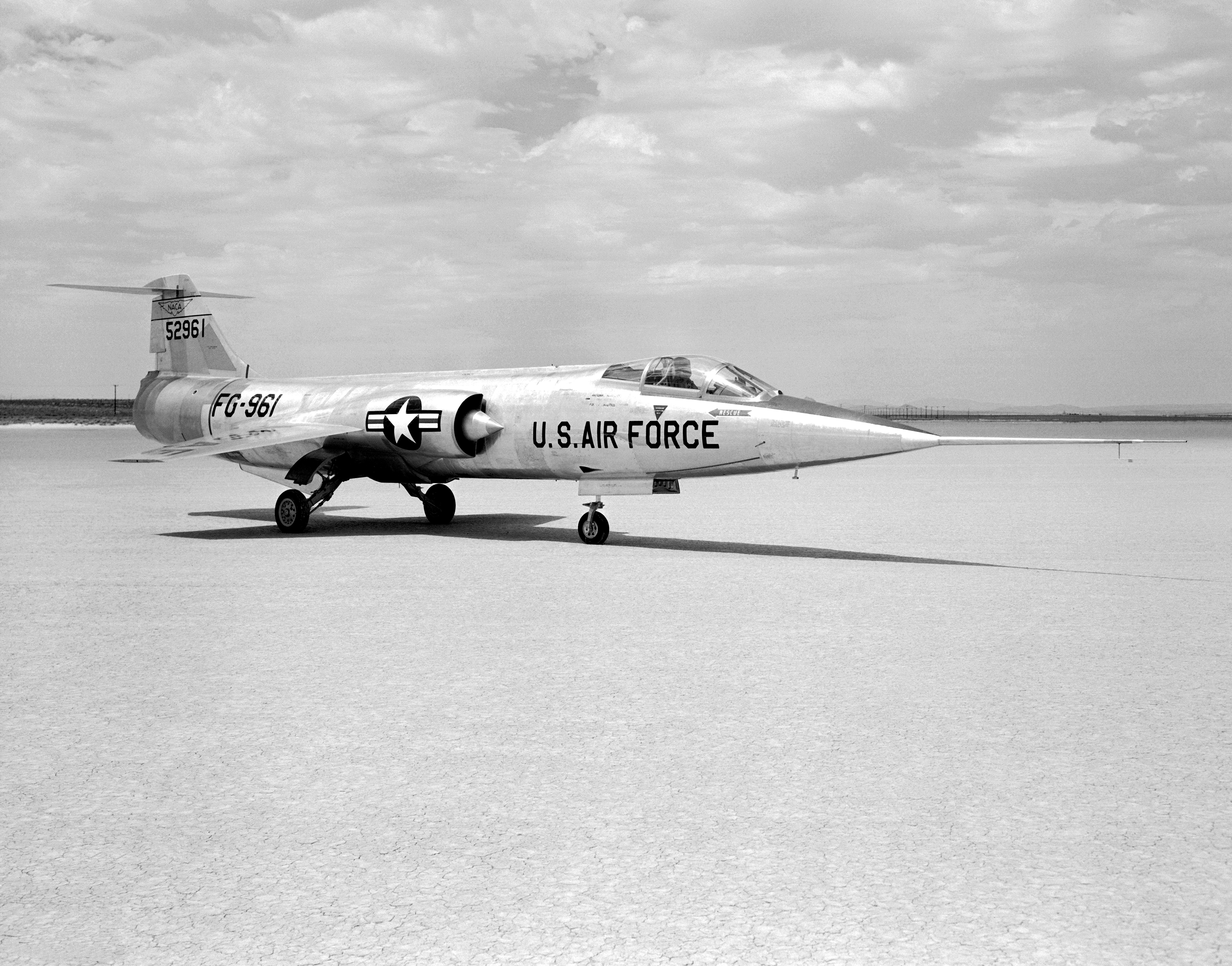 YF-104A (Serial # 55-2961) on Rogers Dry Lake at Edwards AFB.