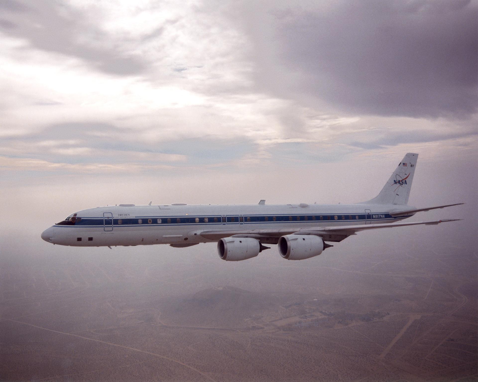 DC-8 returning from AFWEX deployment showing AeroSAPIENT Ku-band antennas