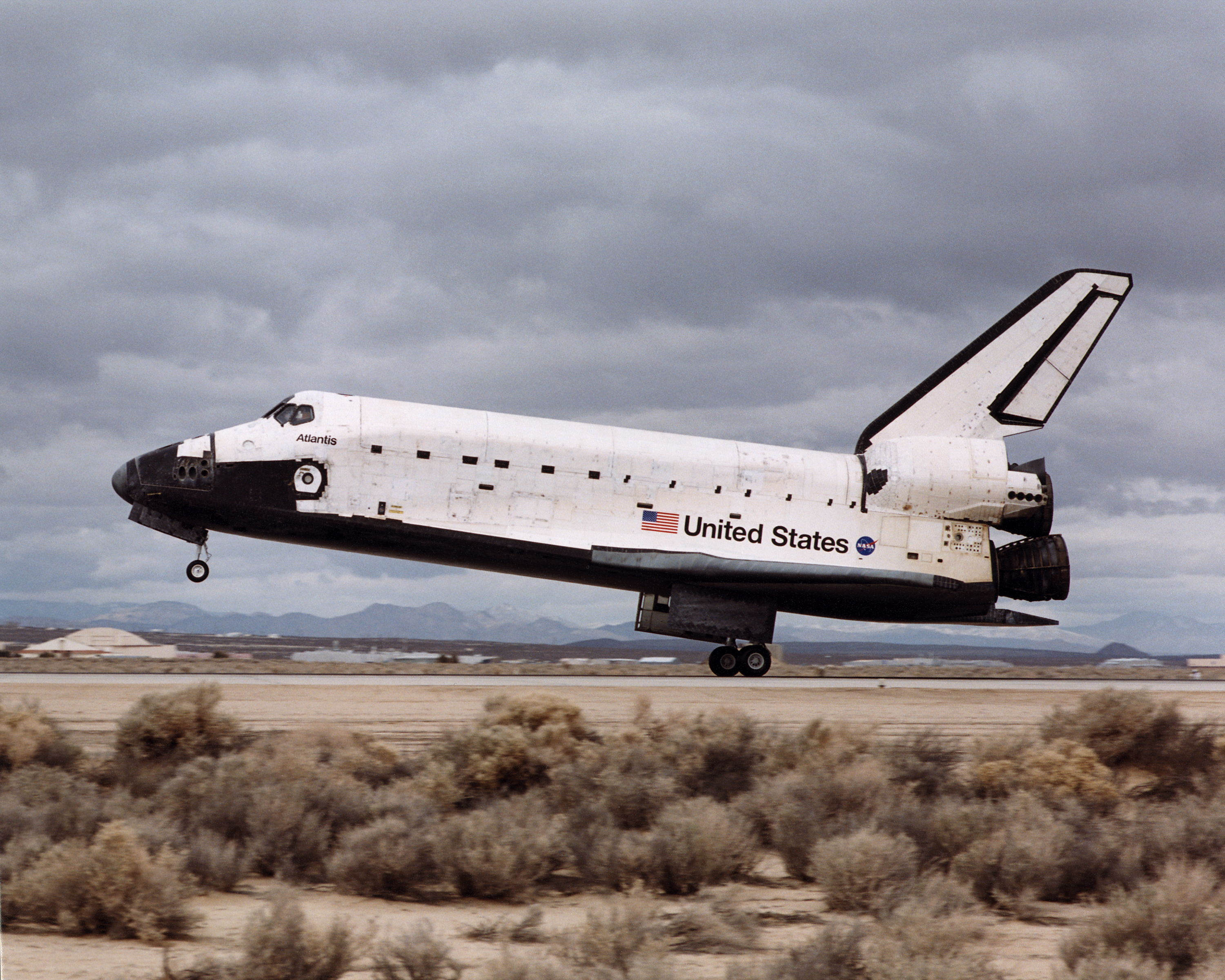 Space Shuttle Atlantis landed at 12:33 p.m. February 20, 2001, on the runway at Edwards Air Force Base, California, where NASA's Dryden Flight Research Center is located. The mission, which began February 7, logged 5.3 million miles as the shuttle orbited earth while delivering the Destiny science laboratory to the International Space Station. Inclement weather conditions in Florida prompted the decision to land Atlantis at Edwards. The last time a space shuttle landed at Edwards was Oct. 24, 2000.
