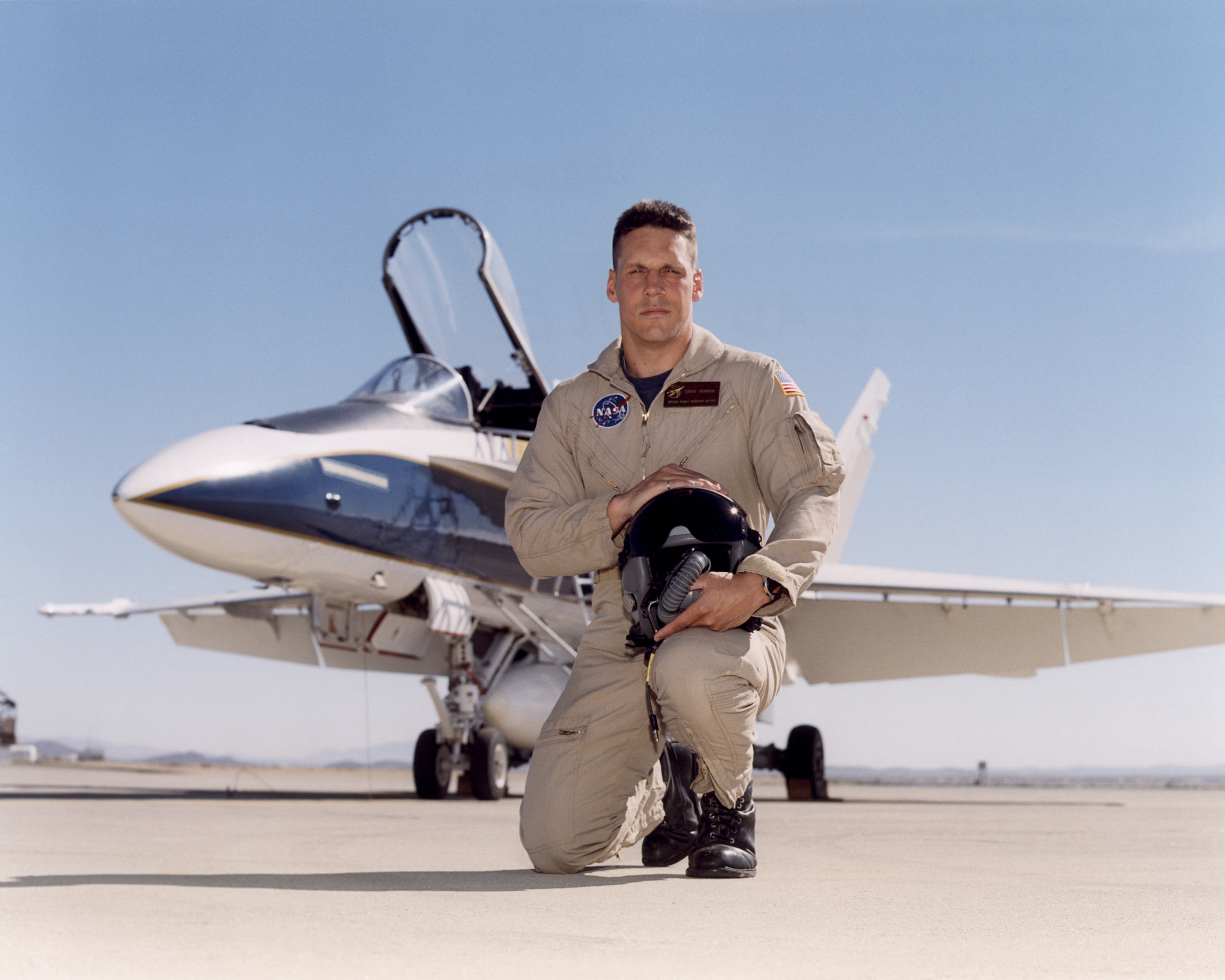 Craig R. Bomben became a pilot in the Flight Crew Branch of NASA's Dryden Flight Research Center, Edwards, Calif., in June 2001. His flying duties include a variety of research and support activities while piloting the F/A-18, DC-8, T-34C and King Air aircraft. He has more than 17 years and 3,800 hours of military and civilian flight experience in over 50 different aircraft types. Bomben came to NASA Dryden from a U.S. Navy assignment to the Personnel Exchange Program, Canada. He served as a test pilot in the Canadian Armed Forces located in Cold Lake, Alberta. He participated in numerous developmental programs to include CT-133 airborne ejection seat testing, F/A-18 weapons flutter testing and F/A-18 night vision goggles integration. Bomben performed U.S. Navy fleet service in 1995 as a strike-fighter department head. He completed two overseas deployments onboard the USS George Washington and USS Stennis. As a combat strike leader, he headed numerous multi-national missions over Iraq in support of Operation Southern Watch. Bomben graduated from the U.S. Naval Test Pilot School in 1992 and was subsequently assigned to the Naval Weapons Test Squadron at Pt. Mugu, Calif. During this tour he developed the F-14D bombsight and worked on various other F-14D and F/A-18 weapon systems developmental programs. Bomben is a 1985 graduate of Washington State University with a bachelor of science degree in electrical engineering. He graduated from naval flight training in 1987 and was recognized as a Commodore List graduate. His first assignment was to Naval Air Station Pensacola, Fla., where he was an instructor in the T-2B Buckeye. When selected to fly the F/A-18 in 1989, he joined a fleet squadron and deployed aboard the USS Forrestal. Bomben is married to the former Aissa Asuncion. They live in Lancaster, Calif., with their 3 children.