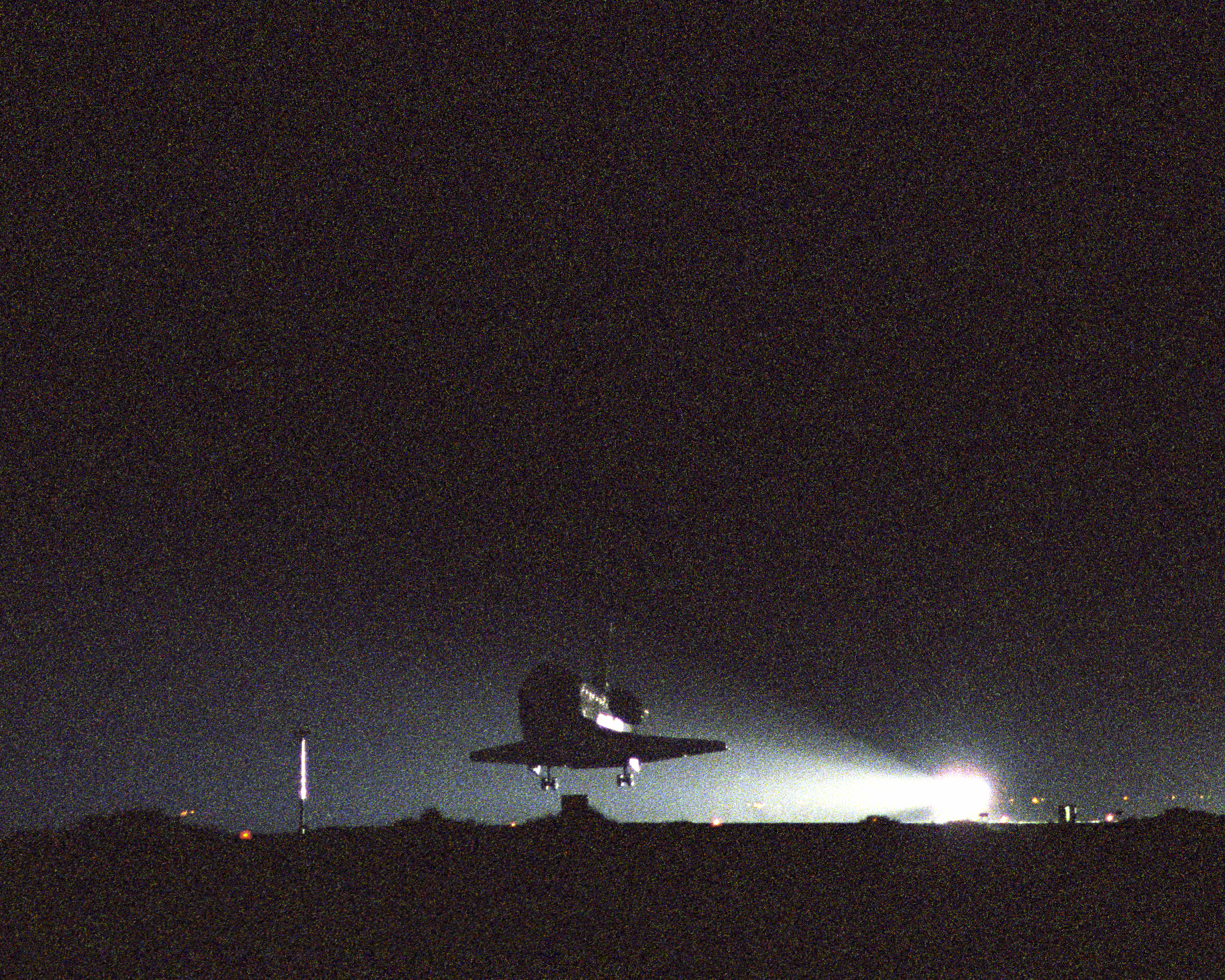 Space Shuttle Discovery landed at NASA's Dryden Flight Research Center at 5:11 a.m., following the very successful 14-day STS-114 return to flight mission
