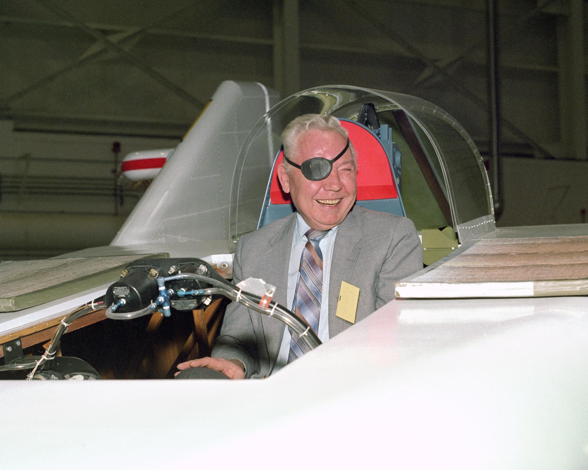 NASA Pilot Bruce Peterson in the cockpit of the restored M2-F1 Lifting Body.