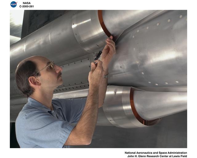 DAN KOVACH WORKING ON THE ROCKET BASED COMBINED CYCLE RIG 3.1 MODEL IN THE 10X10 FOOT SUPERSONIC WIND TUNNEL