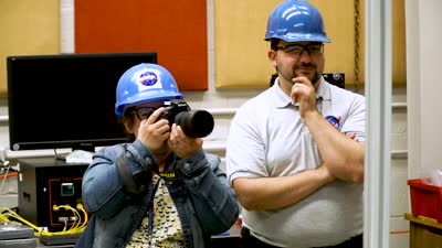 Bridget Caswell at NASA Glenn Research Center does a 60-second video interviews for the NASA 60th Anniversary.