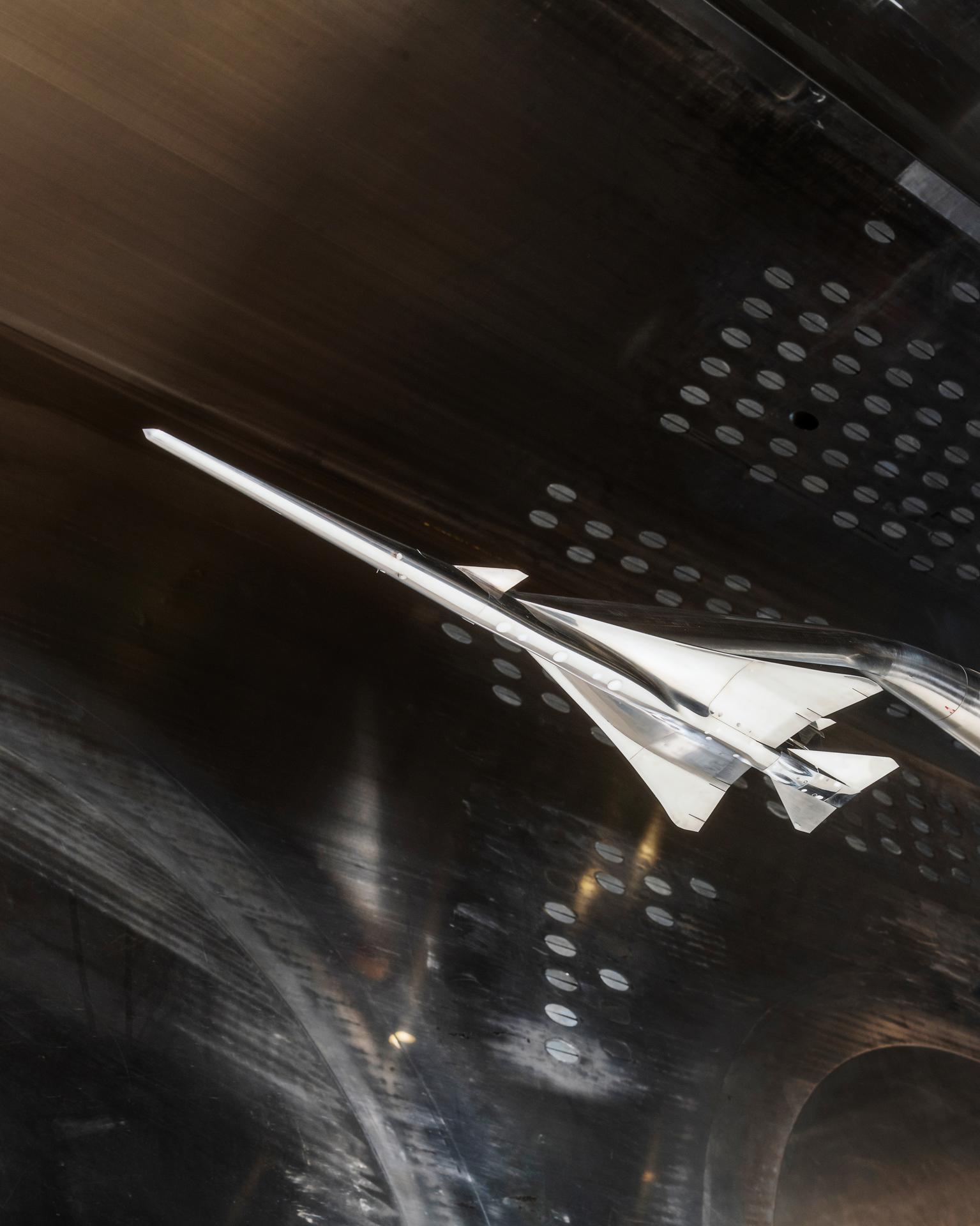 Commercial Supersonic Transport, CST Project, X-59 Sonic Boom Test Model, in the 8x6-foot Supersonic Wind Tunnel, SWT