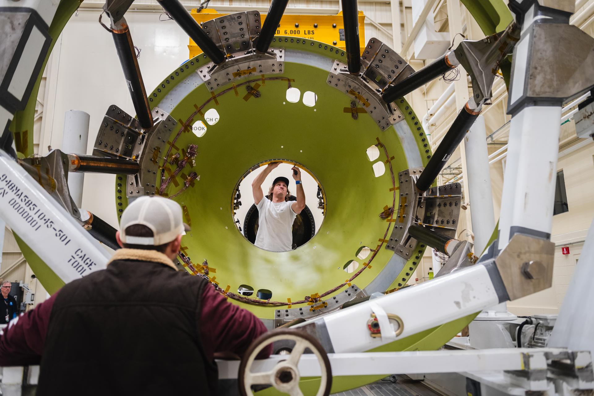 The Launch Abort System and the Orion Crew Module, also known as the Orion Environmental Test Article (ETA), returned to NASA’s Neil Armstrong Test Facility in Sandusky, Ohio, in October 2023 through January 2024 and completed an 11-month test campaign necessary for the safety and success of Artemis II. Photo Credit: (NASA/Jordan Salkin)