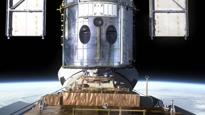 Animated sequence shows the rendezvous, capture and berthing of the Hubble Space Telescope.