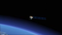 animation of the Landsat Data Continuity Mission (LDCM) spacecraft in orbit around the Earth. The satellite will travel at 7.5 km/second, circling the globe every 99 minutes at an altitude of 438 miles. LDCM will image a swath 185 km in width and complete about 14 orbits each day, thereby imaging Earth's land every 16 days.