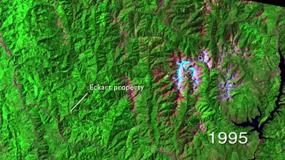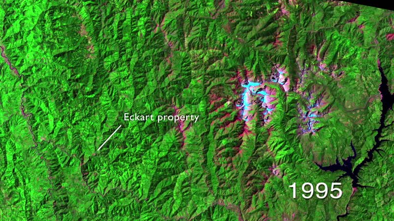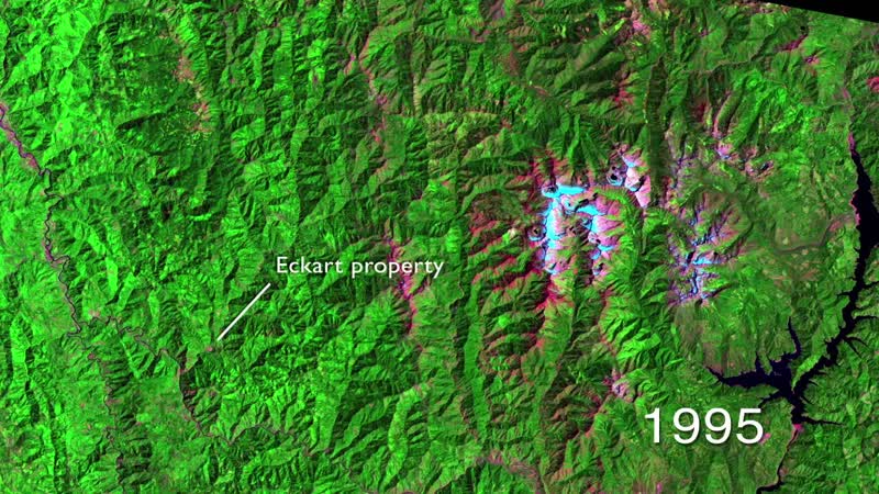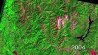 timelapse of Trinity County from 1995-2011, focusing on forest fires in the National Forest and the regrowth after. Data from Landsat satellites.