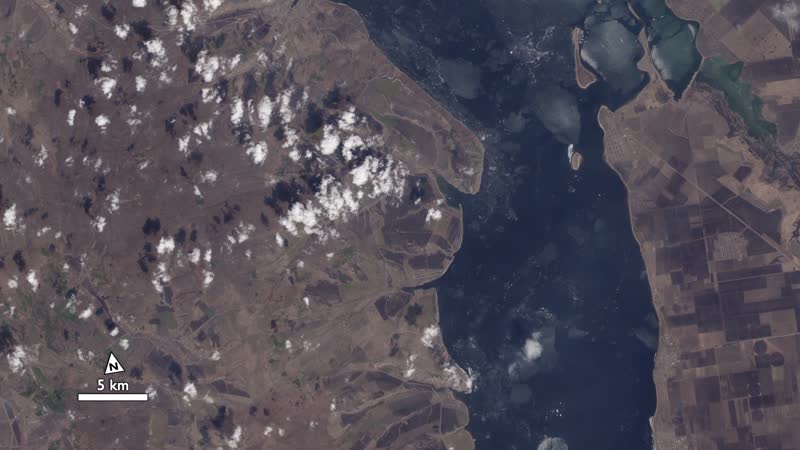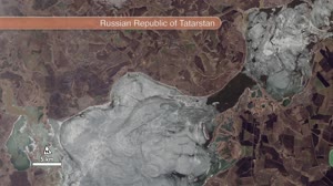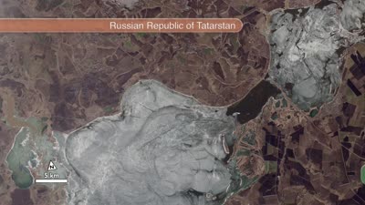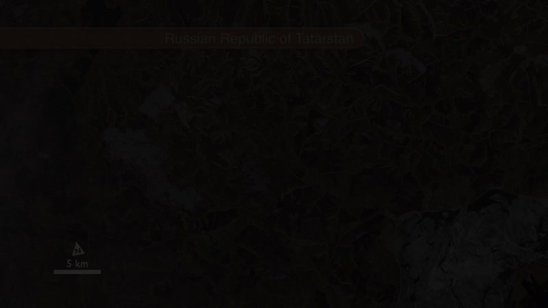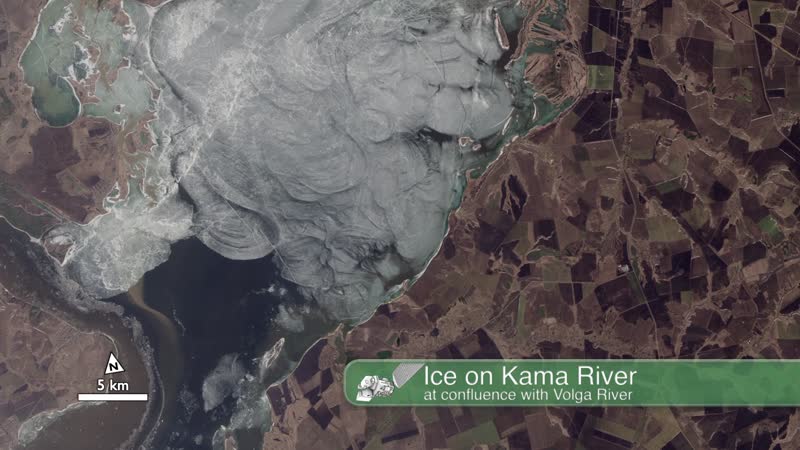 Ice on the Volga River is readily apparent in this animation of full-resolution Landsat data, collected on April 19, 2013, by the Landsat Data Continuity Mission. The rectangular pattern of the surrounding landscape reveals the presence of farm fields.