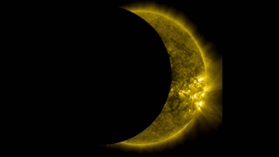 On Jan 30, 2014, beginning at 8:31 a.m EST, the moon moved between NASA’s Solar Dynamics Observatory, or SDO, and the sun, giving the observatory a view of a partial solar eclipse from space. Such a lunar transit happens two to three times each year. This one lasted two and one half hours, which is the longest ever recorded. When the next one will occur is as of yet unknown due to planned adjustments in SDO's orbit. Note in the pictures how crisp the horizon is on the moon, a reflection of the fact that the moon has no atmosphere around it to distort the light from the sun. The sun emitted a mid-level solar flare, peaking at 11:11 a.m. EST on Jan. 30, 2014. Images of the flare were captured by NASA's Solar Dynamics Observatory, or SDO, shortly after the observatory witnessed a lunar transit. The black disk of the moon can be seen in the lower right of the images.