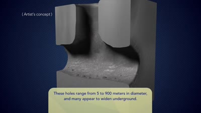Since 2009, NASA’s Lunar Reconnaissance Orbiter (LRO) has spotted hundreds of conspicuous holes on the Moon. These steep-walled “pits" vary from a few meters to nearly 1 kilometer wide, and can reach depths of over 100 meters. Scientists think that pits may form when part of the Moon’s surface collapses above a lava tube, and high-resolution photographs from LRO suggest that many of the pits widen underground. If so, lunar pits might provide shelter from radiation, meteorite impacts, and extreme temperatures, making them valuable sites for future exploration.