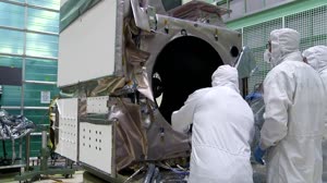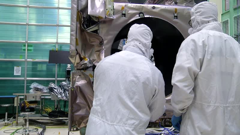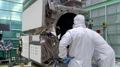 Dolly shots of the ATLAS instrument inside the cleanroom.