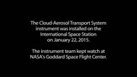 On January 22, 2015, the Cloud-Aerosol Transport System was installed on the International Space Station. This procedure involved the first ever hand-off between the two robotic arms on the ISS, with the first arm removing the instrument from the SpaceX Dragon capsule that ferried it to the station, and the second arm taking the instrument and moving it to the Japanese Experiment Module, where it was installed. The team monitored the progress of the installation from NASA's Goddard Space Flight Center, where the Cloud-Aerosol Tranpsort System (CATS) was designed and built. Once installed, the team powered up the system and initiated configuration procedures. Once set up, the telescope door was opened and they prepared to collect data. CATS is a lidar remote sensing instrument that will provide range-resolved profile measurements of atmospheric aerosols and clouds. Data from the instrument will be used to determine the height and thickness of the cloud or aerosol layer, as well as discriminate between different particle types. The instrument is intended to operate on-orbit for at least six months, and up to three years.
