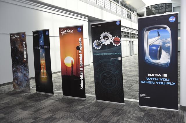 Swedish Delegation visited Goddard May 3, 2017. Banner display in Building 28 atrium for King of Sweden delegation visit to Goddard.