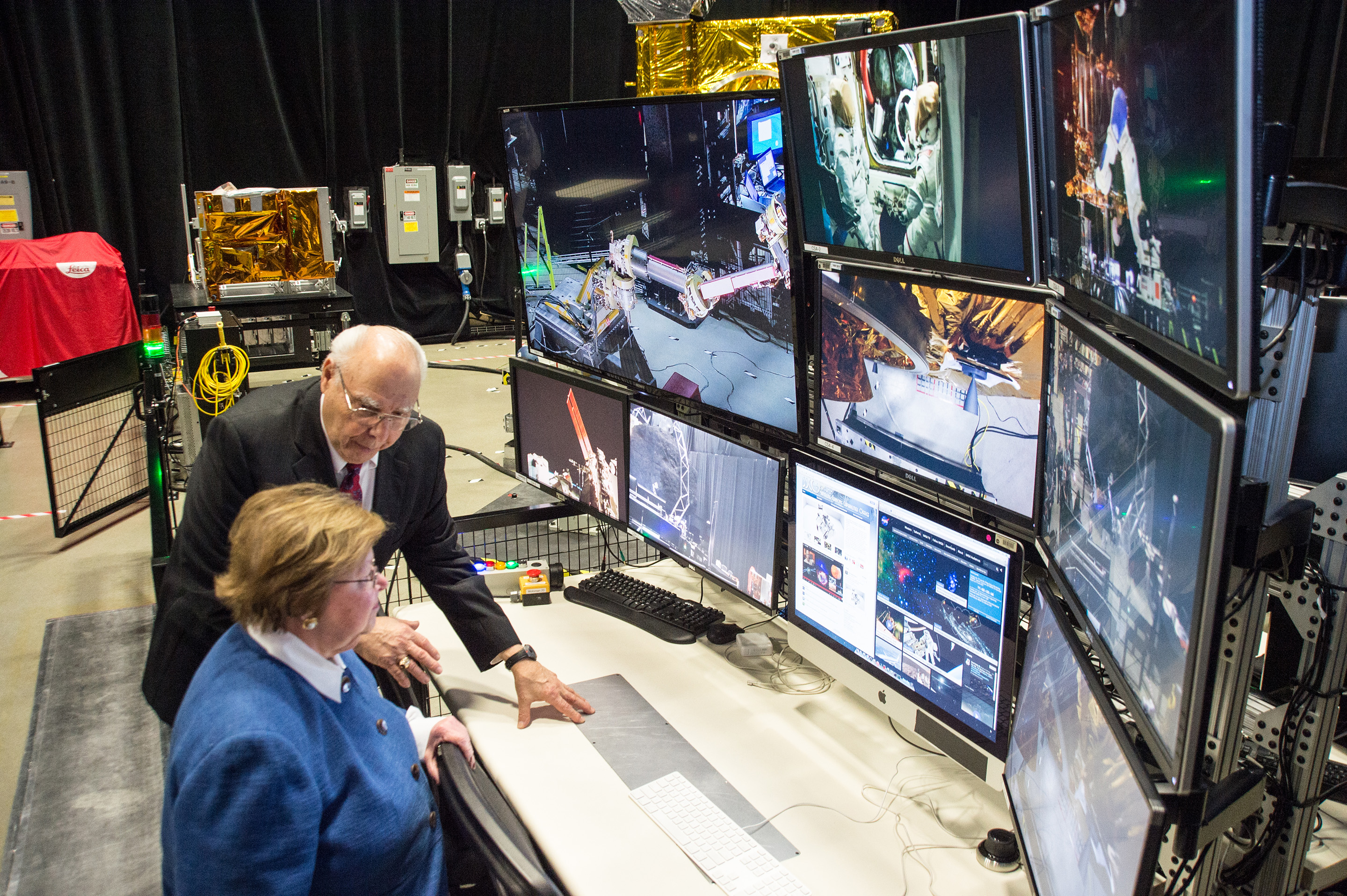 Sen. Barbara Mikulski participated in a ribbon cutting at NASA’s Goddard Space Flight Center on January 6th, 2016, to officially open the new Robotic Operations Center (ROC) developed by the Satellite Servicing Capabilities Office (SSCO). Within the ROC's black walls, NASA is testing technologies and operational procedures for science and exploration missions, including the Restore-L satellite servicing mission and also the Asteroid Redirect Mission. Here, she receives an overview of a robotic console station used to practice satellite servicing activities. During her tour of the ROC, Sen. Mikulski saw first-hand an early version of the NASA Servicing Arm, a 2-meter-class robot with the dexterity to grasp and refuel a satellite on orbit. She also heard a description of Raven, a payload launching to the International Space Station that will demonstrate real-time, relative space navigation technology. The robotic technologies that NASA is developing within the ROC also support the Journey to Mars. Learn more about NASA’s satellite servicing technologies at <a href="http://ssco.gsfc.nasa.gov/" rel="nofollow">ssco.gsfc.nasa.gov/</a>. Image credit: NASA/Desiree Stover <b><a href="http://www.nasa.gov/audience/formedia/features/MP_Photo_Guidelines.html" rel="nofollow">NASA image use policy.</a></b> <b><a href="http://www.nasa.gov/centers/goddard/home/index.html" rel="nofollow">NASA Goddard Space Flight Center</a></b> enables NASA’s mission through four scientific endeavors: Earth Science, Heliophysics, Solar System Exploration, and Astrophysics. Goddard plays a leading role in NASA’s accomplishments by contributing compelling scientific knowledge to advance the Agency’s mission. <b>Follow us on <a href="http://twitter.com/NASAGoddardPix" rel="nofollow">Twitter</a></b> <b>Like us on <a href="http://www.facebook.com/pages/Greenbelt-MD/NASA-Goddard/395013845897?ref=tsd" rel="nofollow">Facebook</a></b> <b>Find us on <a href="http://instagrid.me/nasagoddard/?vm=grid" rel="nofollow">Instagram</a></b>