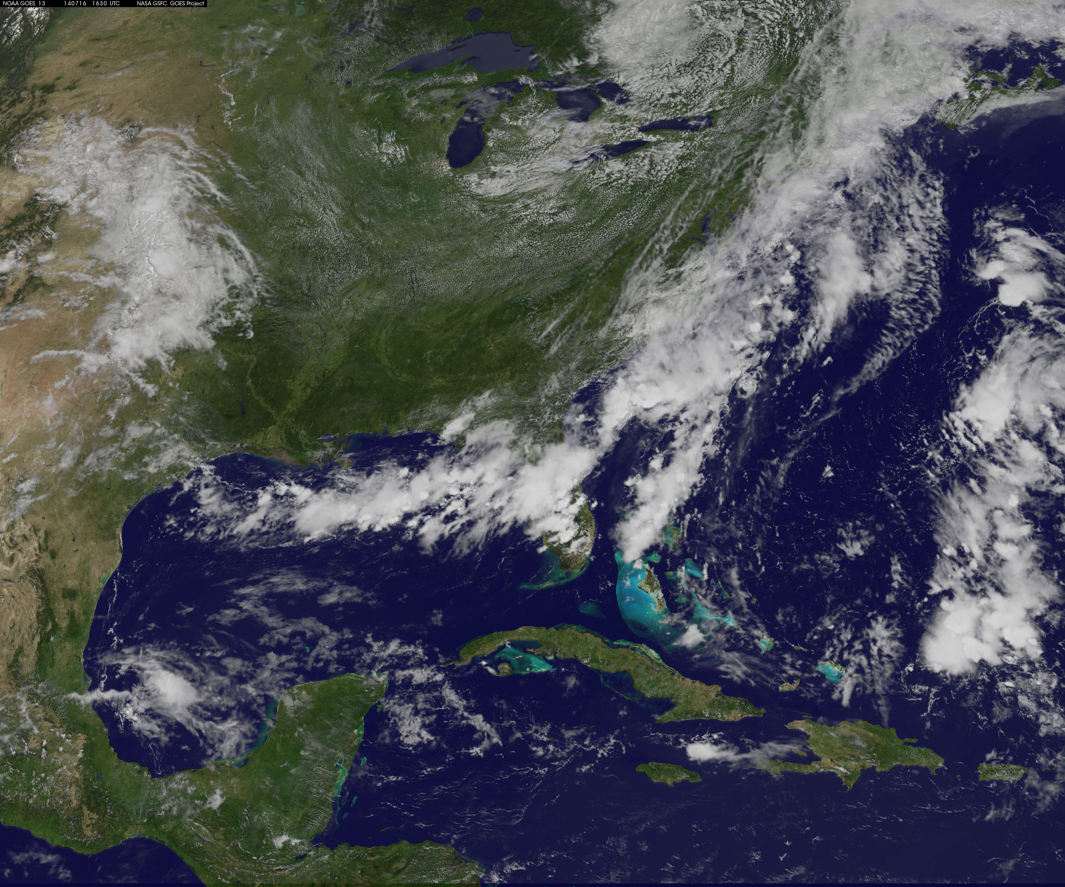 Summertime heat and humidity in the U.S. East Coast is on hold for a couple of days thanks to a cold front and that brought clouds, showers, thunderstorms, and some severe weather on July 16 to the coast. The National Oceanic and Atmospheric Administration (NOAA) noted that the dip in the jet stream will create below normal temperatures for most of the Central and Eastern U.S. for the next couple of days. NOAA's GOES-East satellite captured an image of the clouds associated with the cold front on July 16 at 1630 UTC (12:30 p.m. EDT).The clouds follow the front which stretches from the Florida panhandle, across Florida and up the U.S. East Coast into eastern Canada. Along the front lie two areas of low pressure, one over eastern New England, and the other offshore from South Carolina. Both of those low pressure areas are associated with additional cloudiness along the front. GOES satellites are managed by NOAA. The image was created by the NASA/NOAA GOES Project at NASA's Goddard Space Flight Center in Greenbelt, Maryland. GOES satellites provide the kind of continuous monitoring necessary for intensive data analysis. Geostationary describes an orbit in which a satellite is always in the same position with respect to the rotating Earth. This allows GOES to hover continuously over one position on Earth's surface, appearing stationary. As a result, GOES provide a constant vigil for the atmospheric "triggers" for severe weather conditions such as tornadoes, flash floods, hail storms and hurricanes. For updated information about the storm system, visit NOAA's National Weather Service website: <a href="http://www.weather.gov" rel="nofollow">www.weather.gov</a> For more information about GOES satellites, visit: <a href="http://www.goes.noaa.gov/" rel="nofollow">www.goes.noaa.gov/</a> or <a href="http://goes.gsfc.nasa.gov/" rel="nofollow">goes.gsfc.nasa.gov/</a> Image Credit: NASA/NOAA GOES Project, Text: Rob Gutro <b><a href="http://www.nasa.gov/audience/formedia/features/MP_Photo_Guidelines.html" rel="nofollow">NASA image use policy.</a></b> <b><a href="http://www.nasa.gov/centers/goddard/home/index.html" rel="nofollow">NASA Goddard Space Flight Center</a></b> enables NASA’s mission through four scientific endeavors: Earth Science, Heliophysics, Solar System Exploration, and Astrophysics. Goddard plays a leading role in NASA’s accomplishments by contributing compelling scientific knowledge to advance the Agency’s mission. <b>Follow us on <a href="http://twitter.com/NASAGoddardPix" rel="nofollow">Twitter</a></b> <b>Like us on <a href="http://www.facebook.com/pages/Greenbelt-MD/NASA-Goddard/395013845897?ref=tsd" rel="nofollow">Facebook</a></b> <b>Find us on <a href="http://instagram.com/nasagoddard?vm=grid" rel="nofollow">Instagram</a></b>