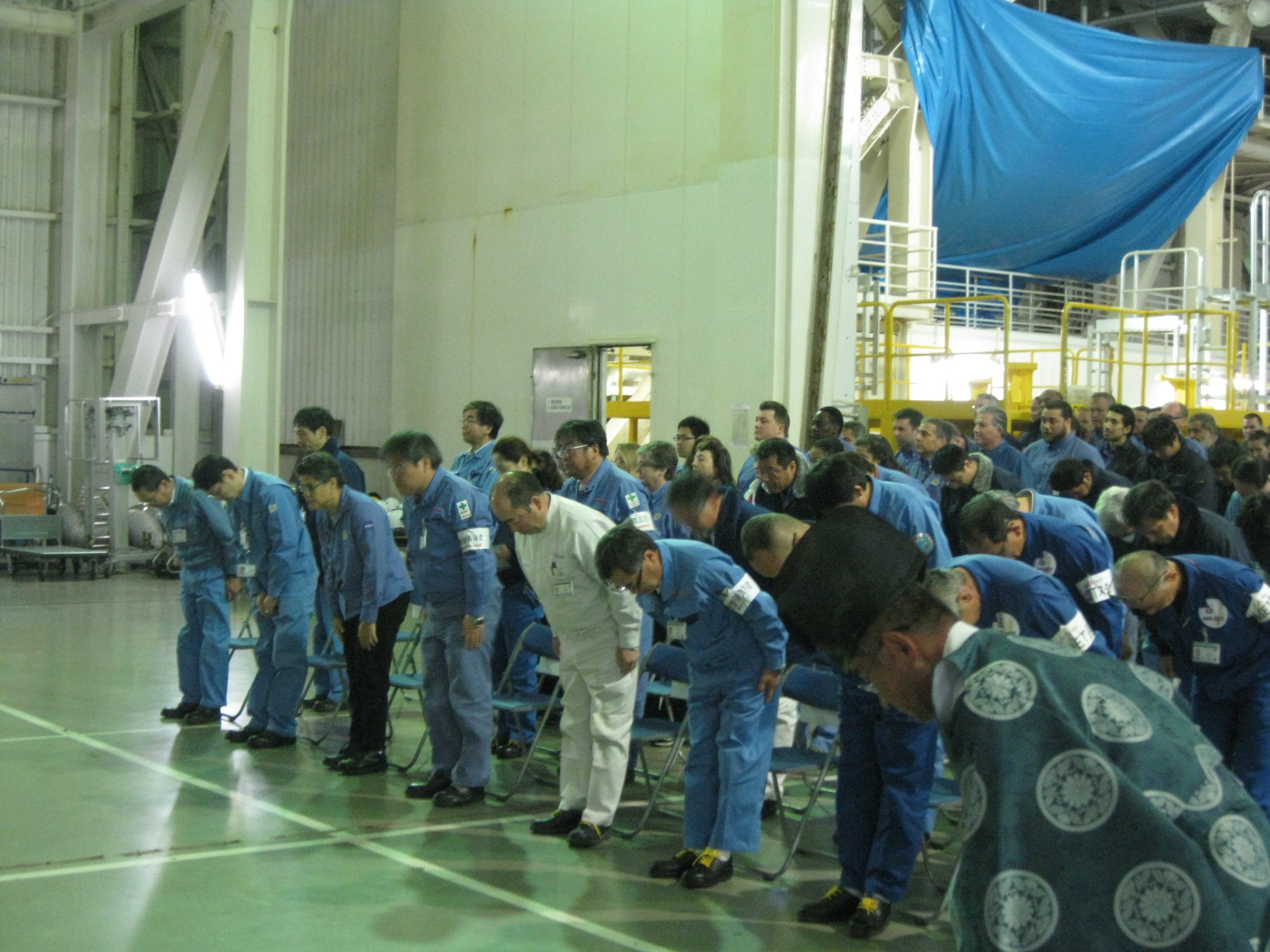 The H-IIA No. 23 rocket that will carry the GPM Core Observatory into space arrived at Tanegashima Space Center on Jan. 20, 2014. The rocket has two stages, an lower first stage that, with the help of two solid rocket boosters gets them off the ground, and an upper second stage that lights up a few minutes after launch to boost the satellite the rest of the way to orbit. The launch services provider, Mitsubishi Heavy Industries (MHI), immediately began assembling the rocket. On Jan. 22, the GPM team in Tanegashima was invited to participate in a blessing ceremony for the rocket. Lynette Marbley, the Instruments Chief Safety and Mission Assurance Officer for GPM, represented the NASA team.