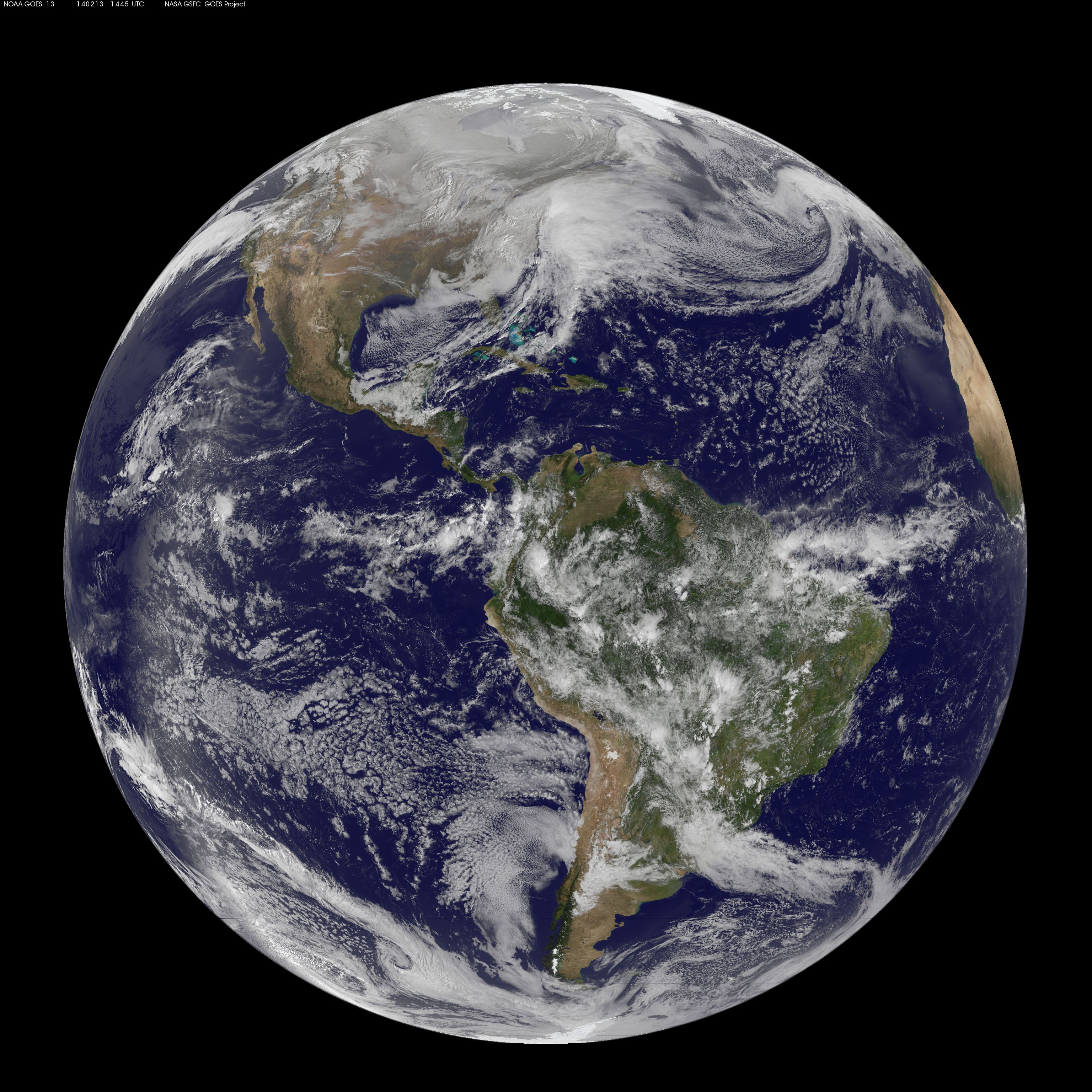 The monster winter storm that brought icing to the U.S. southeast moved northward along the Eastern Seaboard and brought snow, sleet and rain from the Mid-Atlantic to New England on February 13. A new image from NOAA's GOES satellite showed clouds associated with the massive winter storm stretch from the U.S. southeast to the northeast. Data from NOAA's GOES-East satellite taken on Feb. 13 at 1455 UTC/9:45 a.m. EST were made into an image by NASA/NOAA's GOES Project at NASA's Goddard Space Flight Center in Greenbelt, Md. The clouds and fallen snow data from NOAA's GOES-East satellite were overlaid on a true-color image of land and ocean created by data from the Moderate Resolution Imaging Spectroradiometer or MODIS instrument that flies aboard NASA's Aqua and Terra satellites.The image showed that the clouds associated with the storm were blanketing much of the U.S. East Coast. At 3:11 a.m. EST, a surface map issued by the National Weather Service or NWS showed the storm's low pressure area was centered over eastern North Carolina. Since then, the low has continued to track north along the eastern seaboard. By 11 a.m. EST, precipitation from the storm was falling from South Carolina to Maine, according to National Weather Service radar. By 11 a.m. EST, the Washington, D.C. region snow and sleet totals ranged from 3" in far eastern Maryland to over 18" in the northern and western suburbs in Maryland and Virginia. NWS reported that snow, sleet and rain were still falling and more snow is expected as the back side of the low moves into the region. The New York City region remained under an NWS Winter Storm Warning until 6 a.m. on Friday, February 14 and the National Weather Service expects minor coastal impacts Thursday into Friday afternoon. New England was also being battered by the storm. At 10:56 a.m. EST, Barnstable, Mass. on Cape Cod was experiencing rain and winds gusting to 28 mph. An NWS wind advisory is in effect for Cape Cod until 7 p.m. EST. Further north, Portland, Maine was experiencing heavy snow with winds from the northeast at 6 mph. The National Weather Service in Gray, Maine noted "Significant snowfall is likely for much of western Maine and New Hampshire as this storm passes by. There will be a mix or changeover to sleet and freezing rain over southern and coastal sections tonight...before all areas end as a period of snow Friday (Feb. 14) morning." On February 13 at 10 a.m. EST, NOAA's National Weather Service noted "An abundance of Atlantic moisture getting wrapped into the storm will continue to fuel widespread precipitation...which should lift through the Mid-Atlantic States and Northeast Thursday into Friday. A wide swath of heavy snow accumulations are expected with this storm...but air [moving] off the warmer ocean water should change snow over to rain along the coastal areas. Also...a narrow axis of sleet and freezing rain will be possible within the transition zone...which is expected to set up near the I-95 corridor." For updates on local forecasts, watches and warnings, visit NOAA's <a href="http://www.weather.gov" rel="nofollow">www.weather.gov</a> webpage. GOES satellites provide the kind of continuous monitoring necessary for intensive data analysis. Geostationary describes an orbit in which a satellite is always in the same position with respect to the rotating Earth. This allows GOES to hover continuously over one position on Earth's surface, appearing stationary. As a result, GOES provide a constant vigil for the atmospheric "triggers" for severe weather conditions such as tornadoes, flash floods, hail storms and hurricanes. For updated information about the storm system, visit NOAA's WPC website: <a href="http://www.hpc.ncep.noaa.gov/" rel="nofollow">www.hpc.ncep.noaa.gov/</a> For more information about GOES satellites, visit: <a href="http://www.goes.noaa.gov/" rel="nofollow">www.goes.noaa.gov/</a> or <a href="http://goes.gsfc.nasa.gov/" rel="nofollow">goes.gsfc.nasa.gov/</a> Credit: NASA/GSFC/Jeff Schmaltz/MODIS Land Rapid Response Team <b><a href="http://www.nasa.gov/audience/formedia/features/MP_Photo_Guidelines.html" rel="nofollow">NASA image use policy.</a></b> <b><a href="http://www.nasa.gov/centers/goddard/home/index.html" rel="nofollow">NASA Goddard Space Flight Center</a></b> enables NASA’s mission through four scientific endeavors: Earth Science, Heliophysics, Solar System Exploration, and Astrophysics. Goddard plays a leading role in NASA’s accomplishments by contributing compelling scientific knowledge to advance the Agency’s mission. <b>Follow us on <a href="http://twitter.com/NASAGoddardPix" rel="nofollow">Twitter</a></b> <b>Like us on <a href="http://www.facebook.com/pages/Greenbelt-MD/NASA-Goddard/395013845897?ref=tsd" rel="nofollow">Facebook</a></b> <b>Find us on <a href="http://instagram.com/nasagoddard?vm=grid" rel="nofollow">Instagram</a></b>