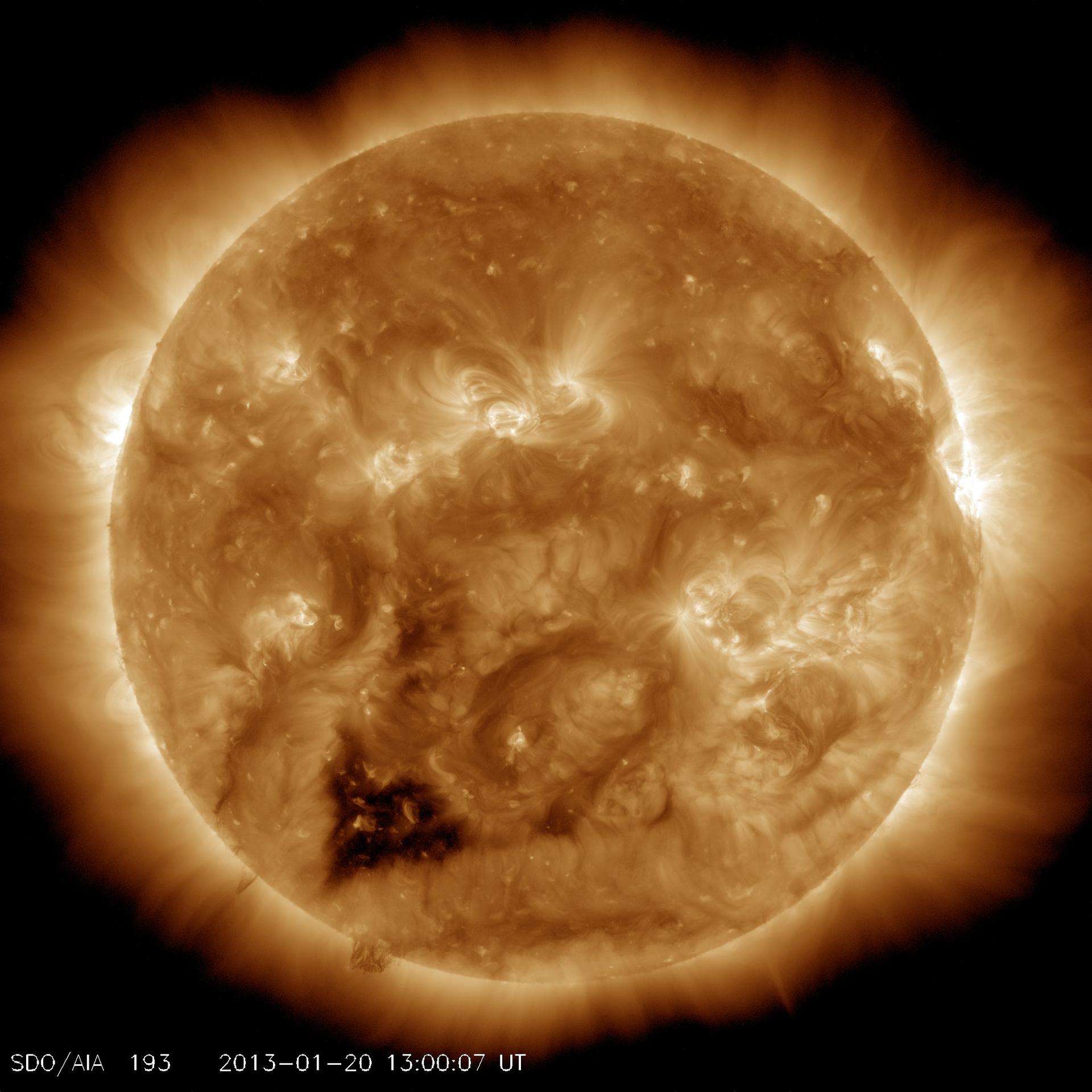 This Solar Dynamics Observatory (SDO) image of the Sun taken on January 20, 2012 in extreme ultraviolet light captures a heart-shaped dark coronal hole. Coronal holes are areas of the Sun's surface that are the source of open magnetic field lines that head way out into space. They are also the source regions of the fast solar wind, which is characterized by a relatively steady speed of approximately 800 km/s (about 1.8 million mph). <b><a href="http://www.nasa.gov/audience/formedia/features/MP_Photo_Guidelines.html" rel="nofollow">NASA image use policy.</a></b> <b><a href="http://www.nasa.gov/centers/goddard/home/index.html" rel="nofollow">NASA Goddard Space Flight Center</a></b> enables NASA’s mission through four scientific endeavors: Earth Science, Heliophysics, Solar System Exploration, and Astrophysics. Goddard plays a leading role in NASA’s accomplishments by contributing compelling scientific knowledge to advance the Agency’s mission. <b>Follow us on <a href="http://twitter.com/NASA_GoddardPix" rel="nofollow">Twitter</a></b> <b>Like us on <a href="http://www.facebook.com/pages/Greenbelt-MD/NASA-Goddard/395013845897?ref=tsd" rel="nofollow">Facebook</a></b> <b>Find us on <a href="http://instagram.com/nasagoddard?vm=grid" rel="nofollow">Instagram</a></b>