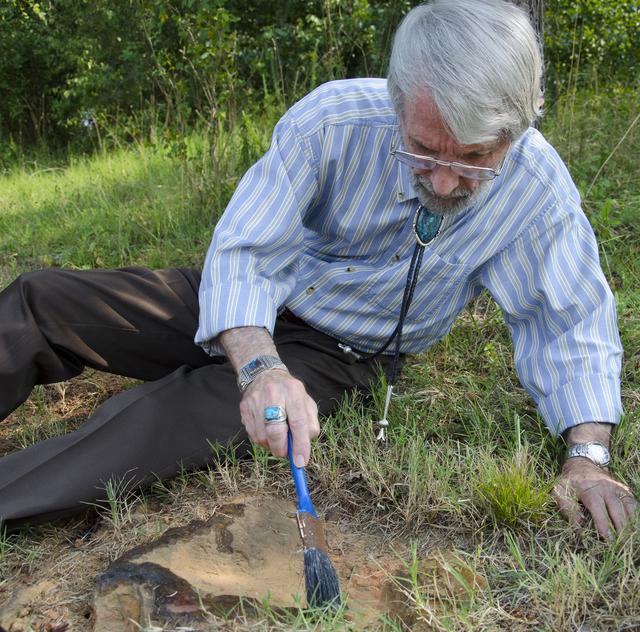 About 110 million light years away, the bright, barred spiral galaxy NGC3259 was just forming stars in dark bands of dust and gas. On Earth, a plant-eating dinosaur left footprints in the Cretaceous mud of what would later become the grounds of NASA’s Goddard Space Flight Center in Greenbelt, Md. Local dinosaur hunter Ray Stanford points out the impression to Goddard officials and members of local media. <b>To read more go to: <a href="http://www.nasa.gov/centers/goddard/news/features/2012/nodosaur.html" rel="nofollow">www.nasa.gov/centers/goddard/news/features/2012/nodosaur....</a></b> Credit: NASA/Goddard/Rebecca Roth <b><a href="http://www.nasa.gov/audience/formedia/features/MP_Photo_Guidelines.html" rel="nofollow">NASA image use policy.</a></b> <b><a href="http://www.nasa.gov/centers/goddard/home/index.html" rel="nofollow">NASA Goddard Space Flight Center</a></b> enables NASA’s mission through four scientific endeavors: Earth Science, Heliophysics, Solar System Exploration, and Astrophysics. Goddard plays a leading role in NASA’s accomplishments by contributing compelling scientific knowledge to advance the Agency’s mission. <b>Follow us on <a href="http://twitter.com/NASA_GoddardPix" rel="nofollow">Twitter</a></b> <b>Like us on <a href="http://www.facebook.com/pages/Greenbelt-MD/NASA-Goddard/395013845897?ref=tsd" rel="nofollow">Facebook</a></b> <b>Find us on <a href="http://instagrid.me/nasagoddard/?vm=grid" rel="nofollow">Instagram</a></b>