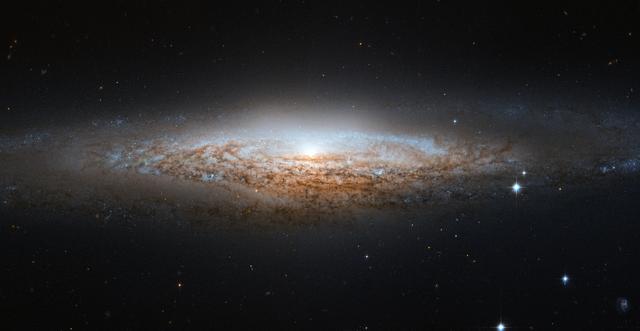 The Hubble Space Telescope has spotted a UFO — well, the UFO Galaxy, to be precise. NGC 2683 is a spiral galaxy seen almost edge-on, giving it the shape of a classic science fiction spaceship. This is why the astronomers at the Astronaut Memorial Planetarium and Observatory gave it this attention-grabbing nickname. While a bird’s eye view lets us see the detailed structure of a galaxy (such as this Hubble image of a barred spiral), a side-on view has its own perks. In particular, it gives astronomers a great opportunity to see the delicate dusty lanes of the spiral arms silhouetted against the golden haze of the galaxy’s core. In addition, brilliant clusters of young blue stars shine scattered throughout the disc, mapping the galaxy’s star-forming regions. Perhaps surprisingly, side-on views of galaxies like this one do not prevent astronomers from deducing their structures. Studies of the properties of the light coming from NGC 2683 suggest that this is a barred spiral galaxy, even though the angle we see it at does not let us see this directly. NGC 2683, discovered on 5 February 1788 by the famous astronomer William Herschel, lies in the Northern constellation of Lynx. A constellation named not because of its resemblance to the feline animal, but because it is fairly faint, requiring the “sensitive eyes of a cat” to discern it. And when you manage to get a look at it, you’ll find treasures like this, making it well worth the effort. This image is produced from two adjacent fields observed in visible and infrared light by Hubble’s Advanced Camera for Surveys. A narrow strip which appears slightly blurred and crosses most the image horizontally is a result of a gap between Hubble’s detectors. This strip has been patched using images from observations of the galaxy made by ground-based telescopes, which show significantly less detail. The field of view is approximately 6.5 by 3.3 arcminutes. Credit: ESA/Hubble & NASA <b><a href="http://www.nasa.gov/audience/formedia/features/MP_Photo_Guidelines.html" rel="nofollow">NASA image use policy.</a></b> <b><a href="http://www.nasa.gov/centers/goddard/home/index.html" rel="nofollow">NASA Goddard Space Flight Center</a></b> enables NASA’s mission through four scientific endeavors: Earth Science, Heliophysics, Solar System Exploration, and Astrophysics. Goddard plays a leading role in NASA’s accomplishments by contributing compelling scientific knowledge to advance the Agency’s mission. <b>Follow us on <a href="http://twitter.com/NASA_GoddardPix" rel="nofollow">Twitter</a></b> <b>Like us on <a href="http://www.facebook.com/pages/Greenbelt-MD/NASA-Goddard/395013845897?ref=tsd" rel="nofollow">Facebook</a></b> <b>Find us on <a href="http://instagrid.me/nasagoddard/?vm=grid" rel="nofollow">Instagram</a></b>